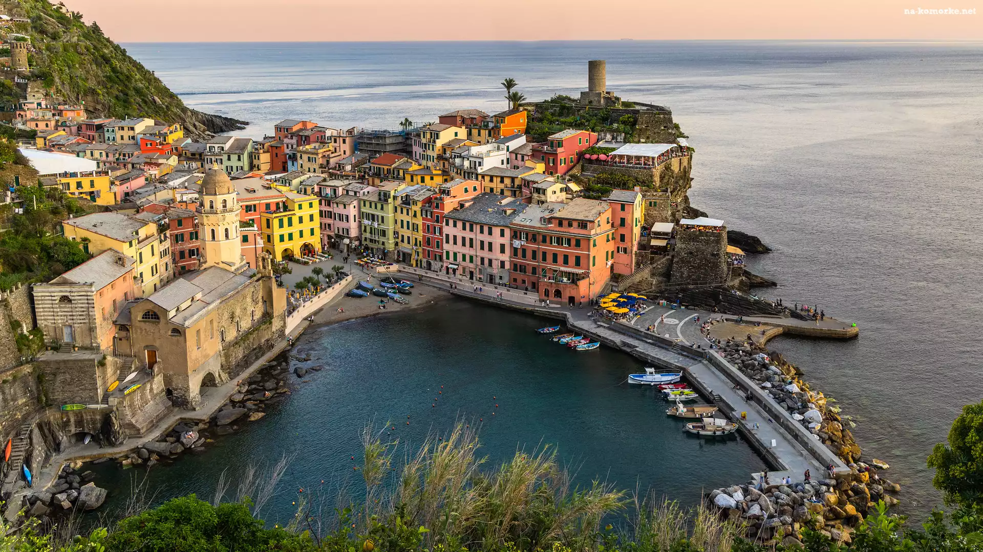 Domy, Region Cinque Terre, Morze Liguryjskie, Vernazza, Włochy na Komórkę