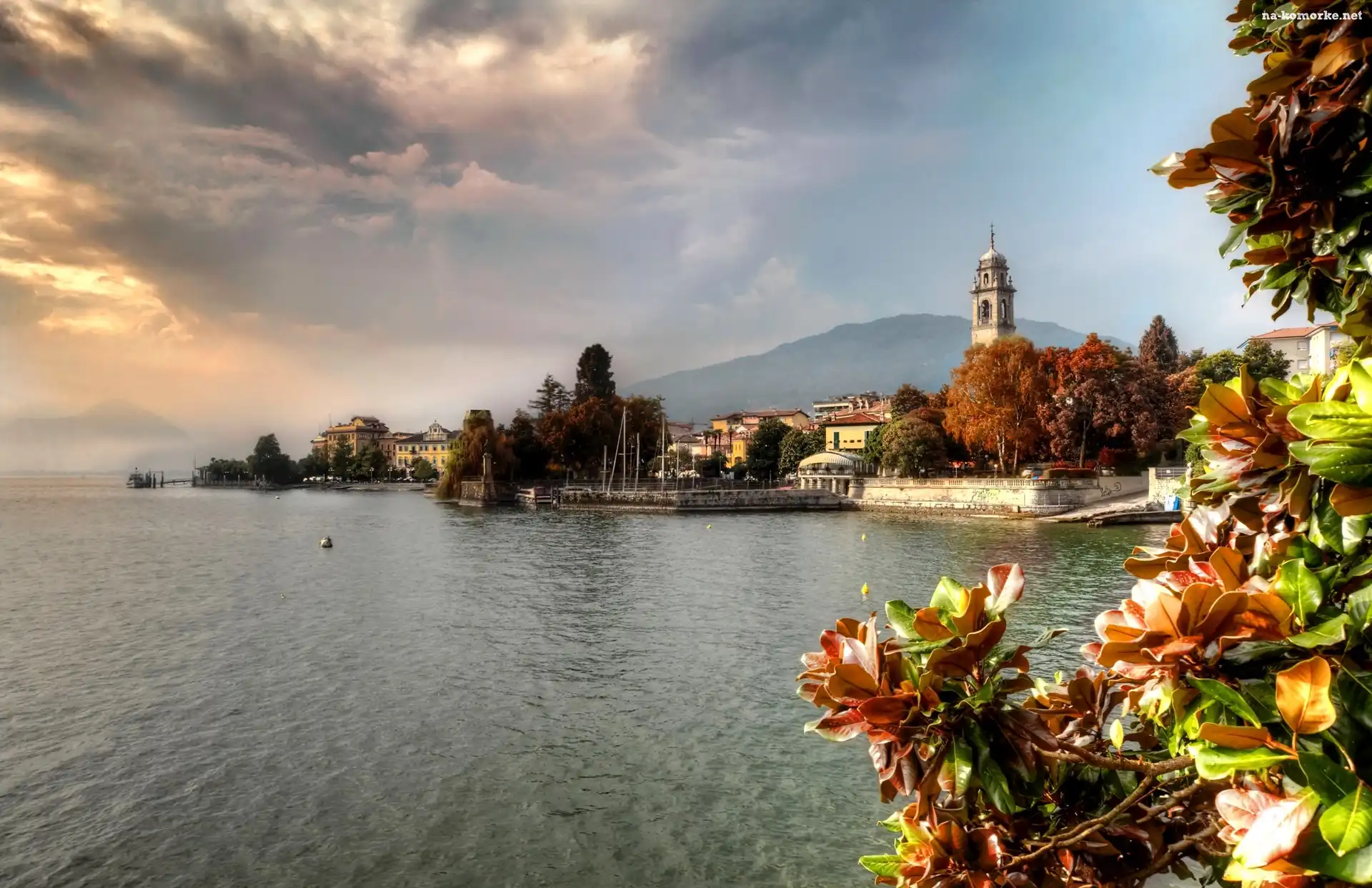 Włochy, Rzeka, Jesień, Miasto, Pallanza na Komórkę