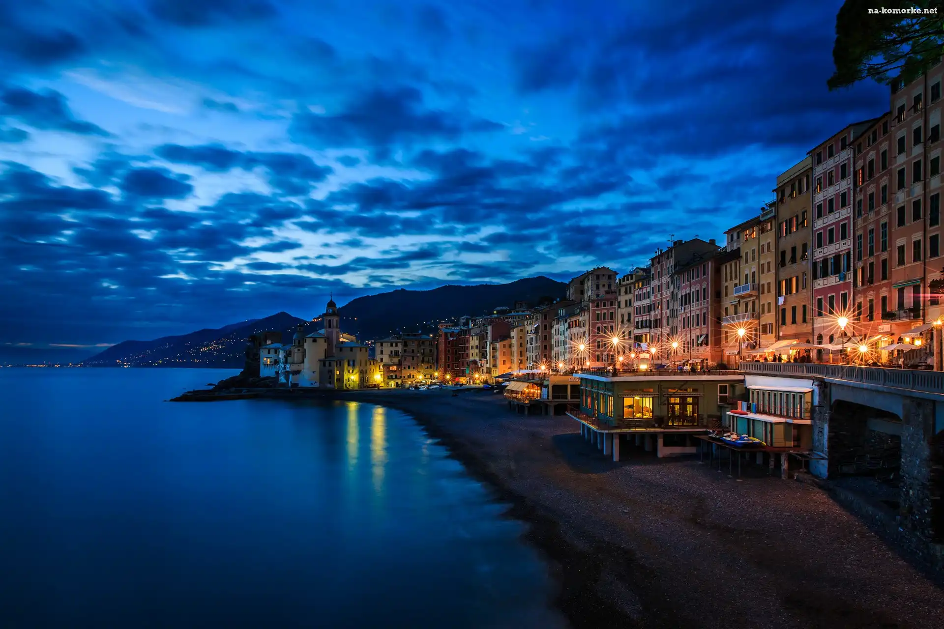 Włochy, Morze, Plaża, Miasto, Camogli na Komórkę