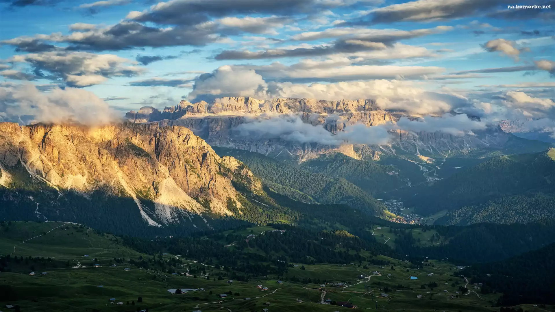 Dolina, Chmury, Szczyt, Włochy, Góry, Dolomity, Seceda na Komórkę