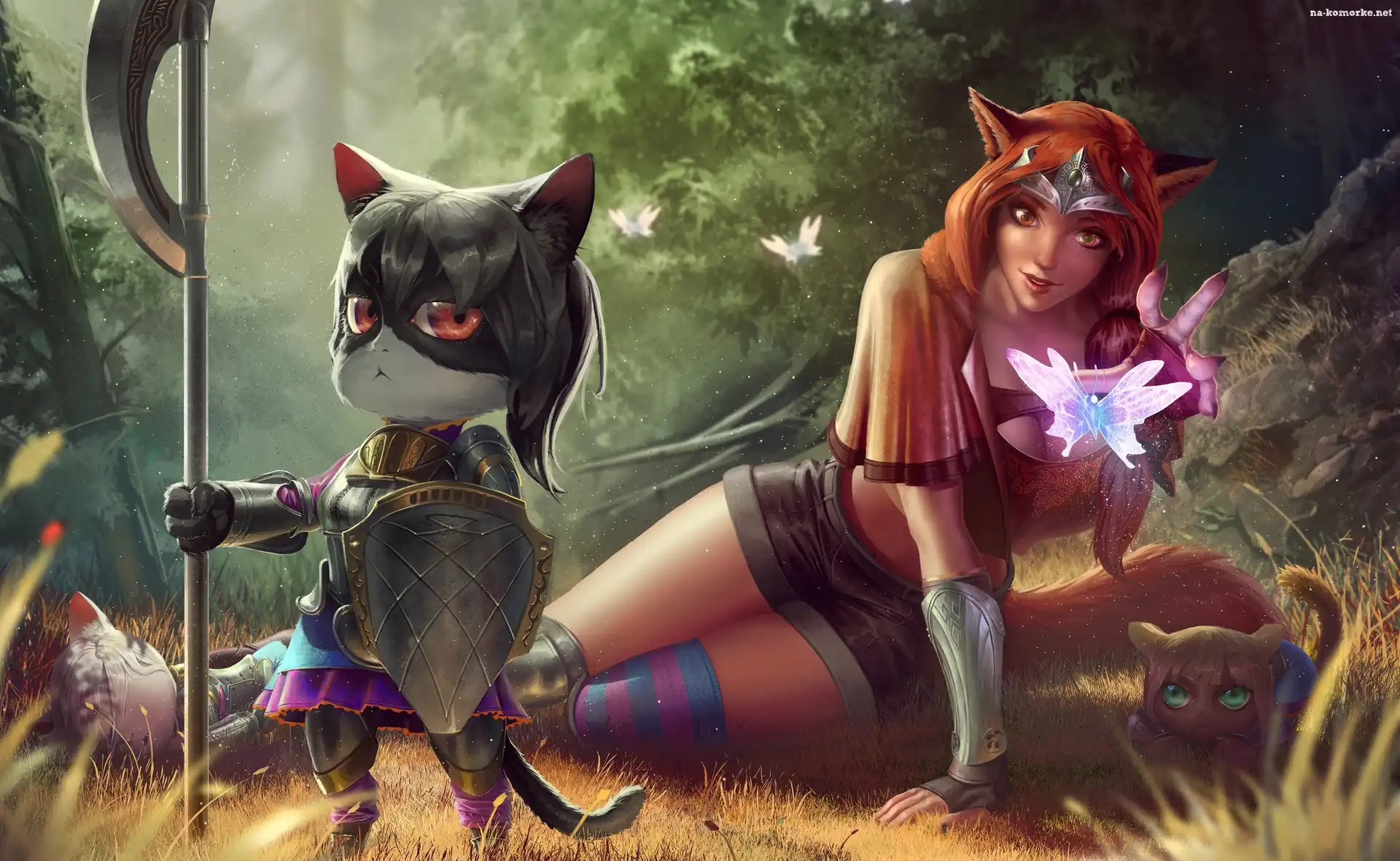 Włócznia, Fantasy, Kobieta, Elf, Kot na Komórkę
