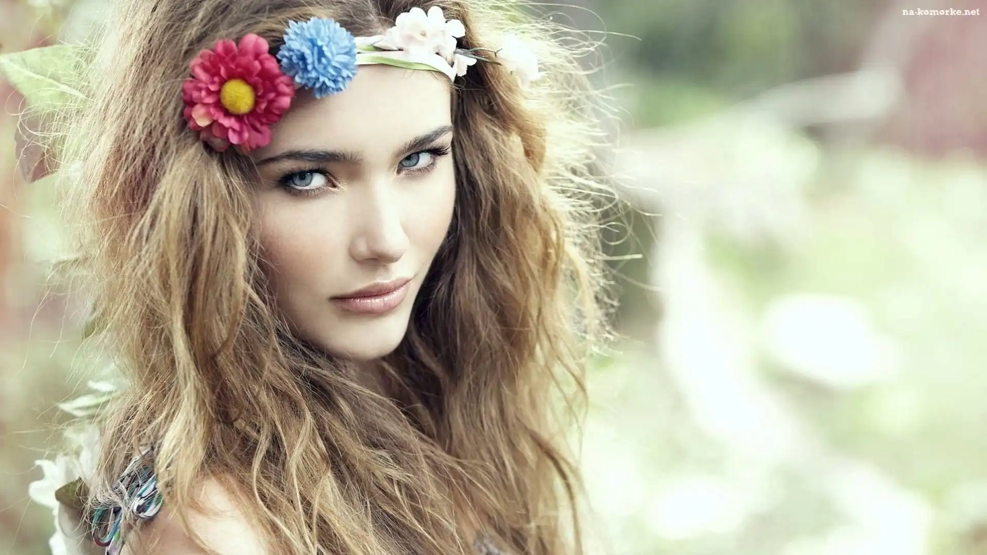 Włosach, Kobieta, Makijaż, Kwiaty, We na Komórkę