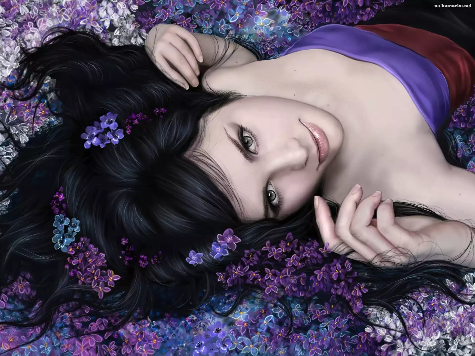 Kobieta, Włosy, Kwiaty na Komórkę