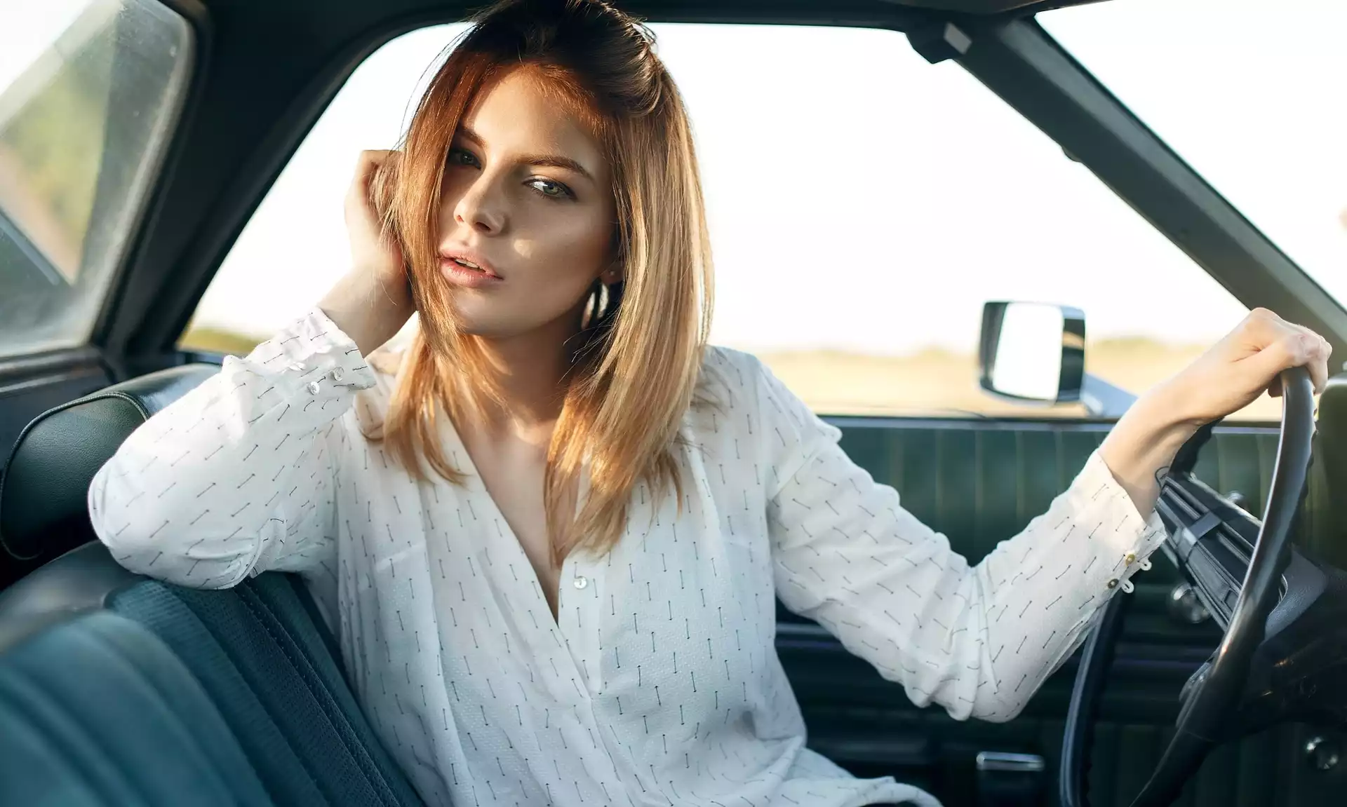 Wnętrze, Dziewczyna, Blondynka, Bluzka, Samochód na Komórkę