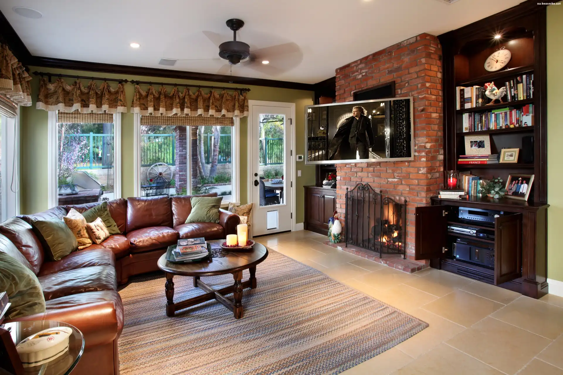 Pokój dzienny, Kominek, Meble, Telewizor na Komórkę