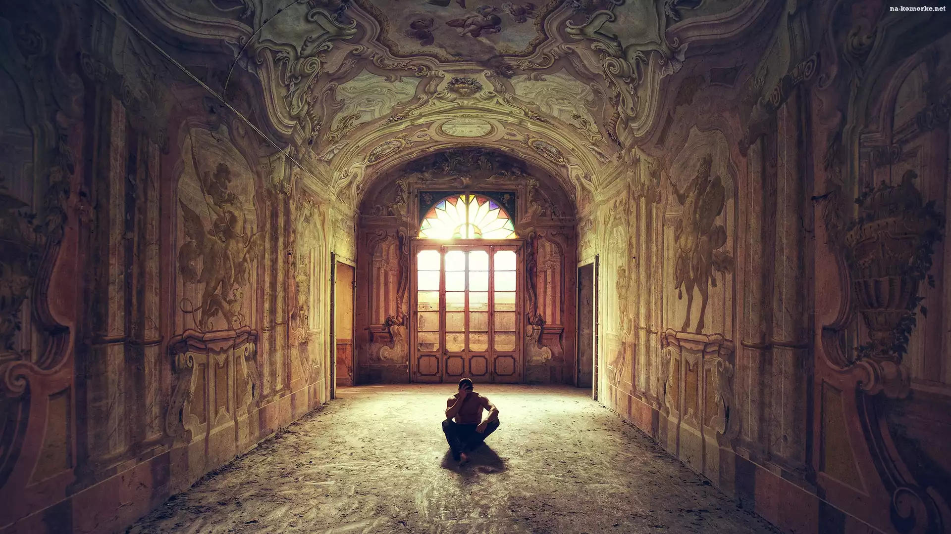 Wnętrze, Mężczyzna, Sala, Okno na Komórkę