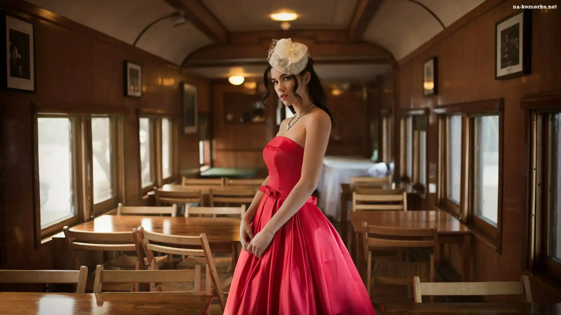 Wnętrze, Czerwona, Kobieta, Krzesła, Sukienka, Stoliki na Komórkę