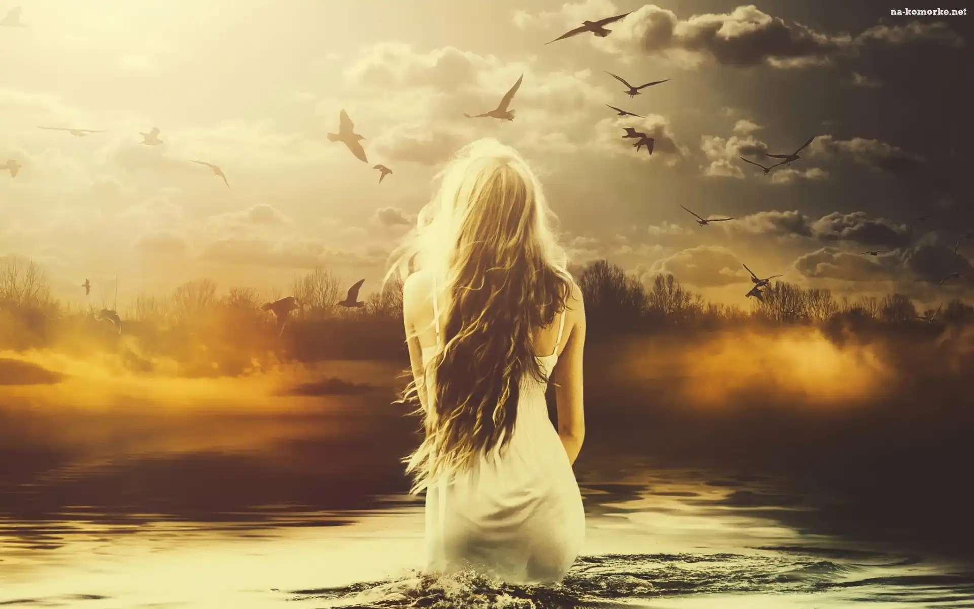 Dziewczyna, Woda, Ptaki na Komórkę