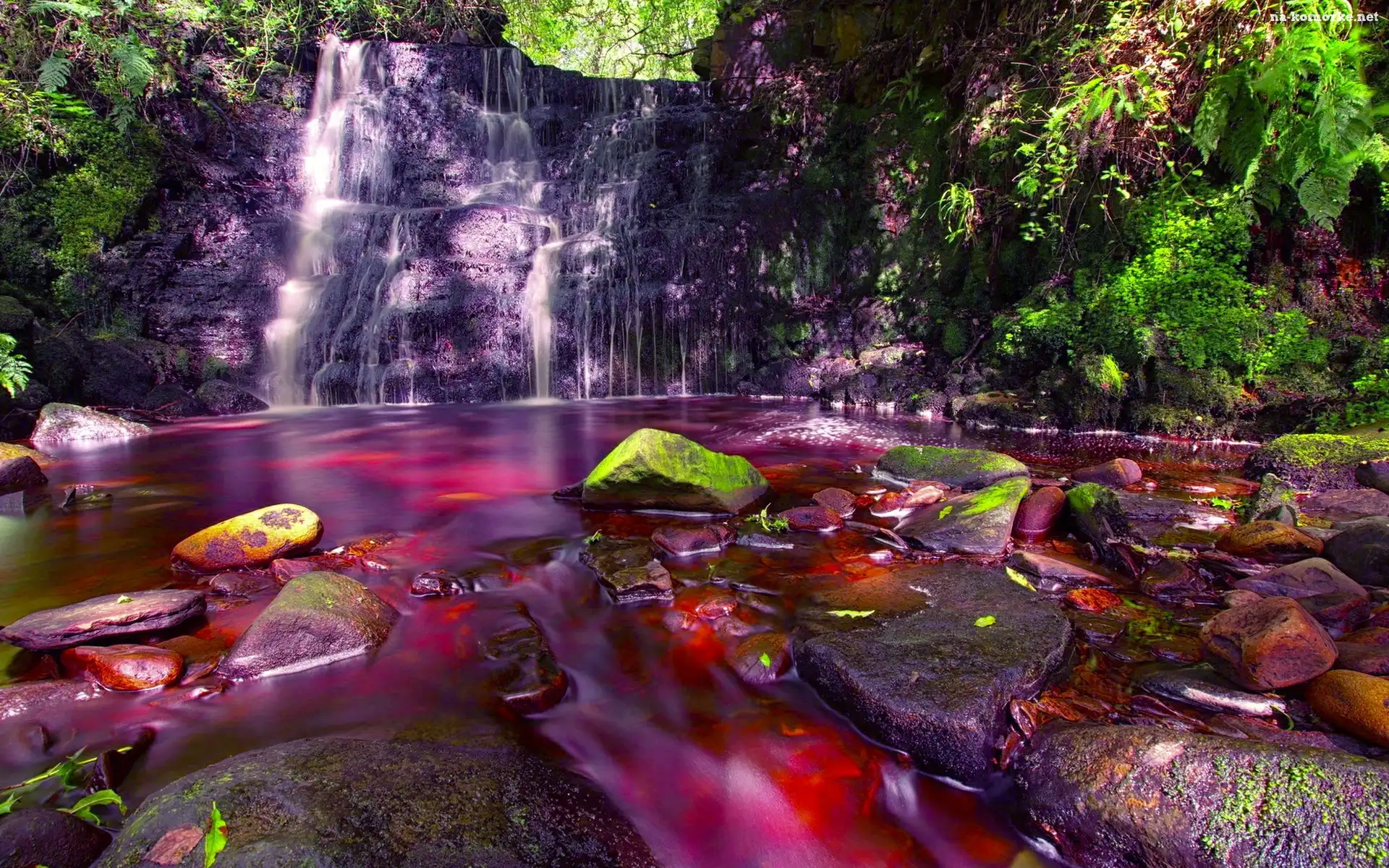 Woda, Wodospad, W, Lesie, Czerwona na Komórkę