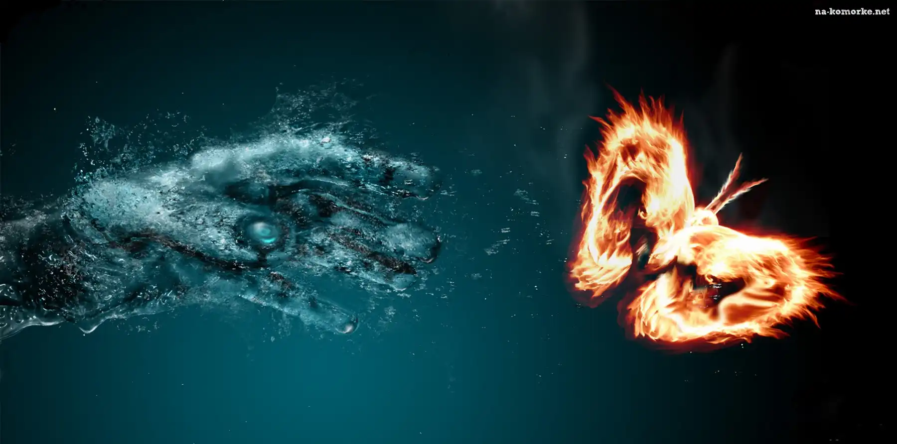 Woda, Motyl, Ogień, Dłoń na Komórkę