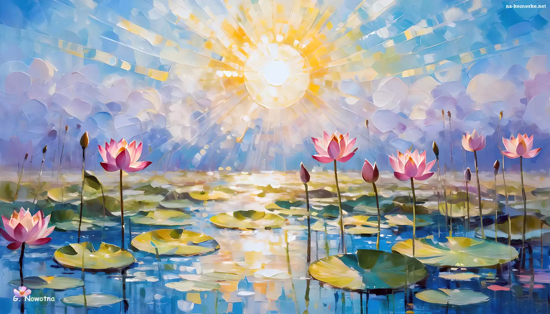 Lotosy, Woda, Słońce, Kwiaty, Grafika na Komórkę