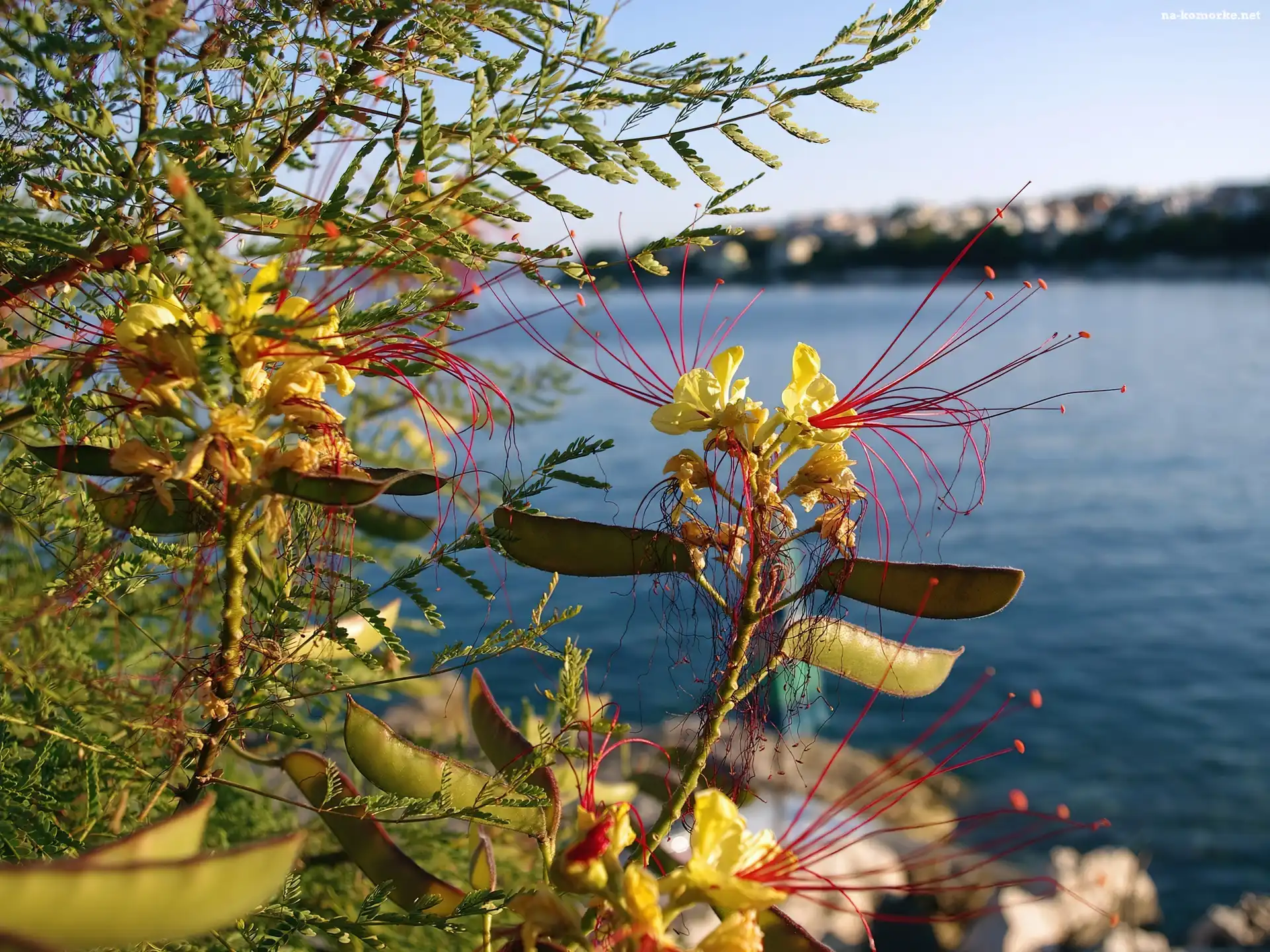 Woda, Żółte, Kwiaty, Strąki, Tło na Komórkę