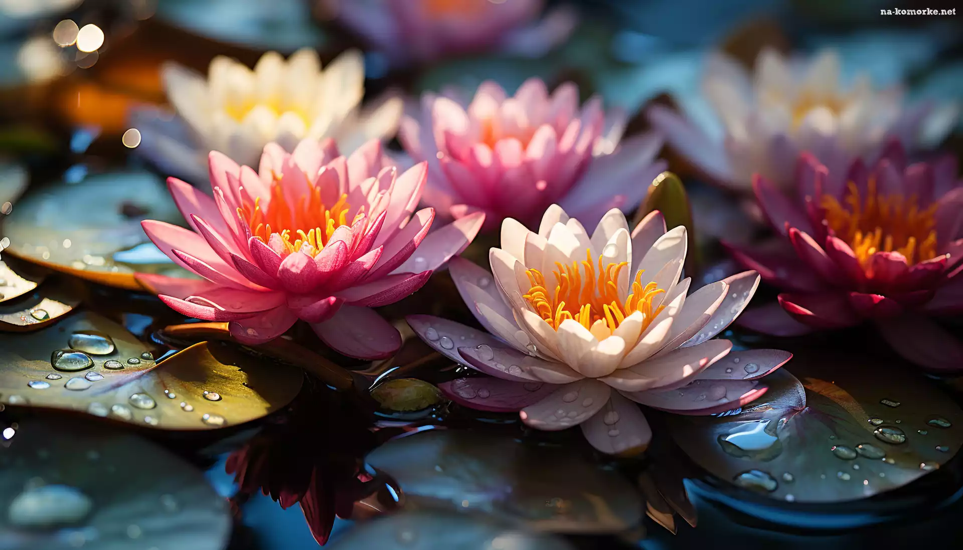 Lilie wodne, Liście, Kolorowe, Kwiaty na Komórkę