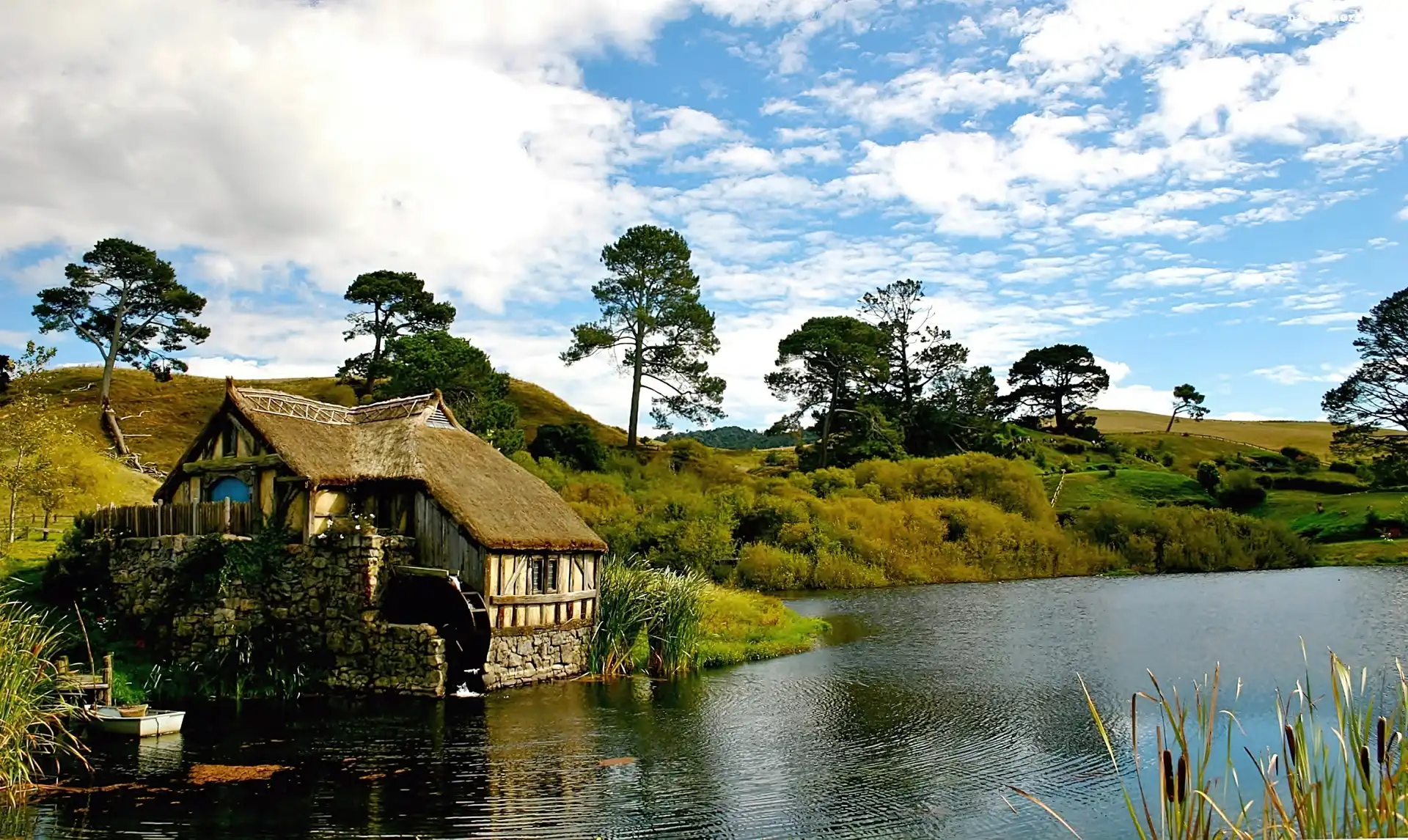 Wzgórza, Wodny, Hobbitów, Łąki, Drzewa, Rzeka, Młyn na Komórkę