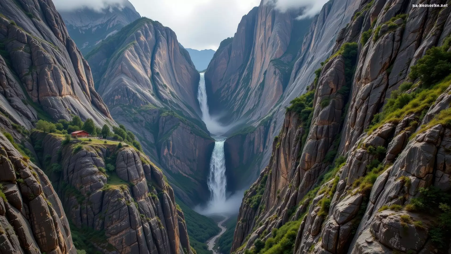 Skaliste, Wodospad, Dom, Góry, AI na Komórkę