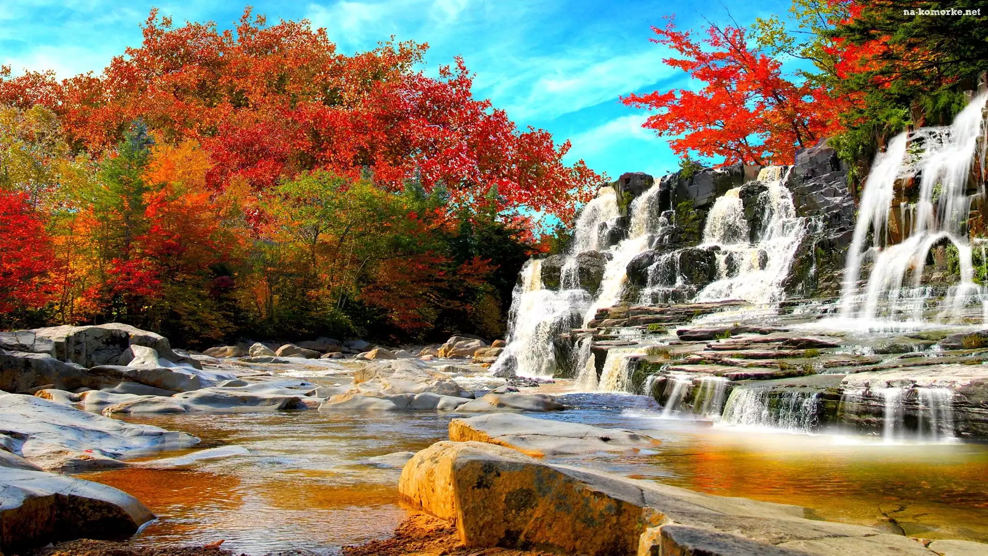 Wodospad, Kaskadowy, Woda Światło, Oświetlone, Drzewa, Las, Przebijające Jesienne, Liście Padające, Drzewa, Zielone, Słoneczne, Krzewy, Promienie Czerwone, Słońce, Drzewo Zielone, Drzewo Żółte, Liście, Czerwone, Drzewa Plaża, Palmy, Piasek Góry, Jezioro, Wodospad Jesień, Drzewa, Góry, Woda Palmy, Chmura Las, Góra, Jesień Wodospad Wodospad, kłoda