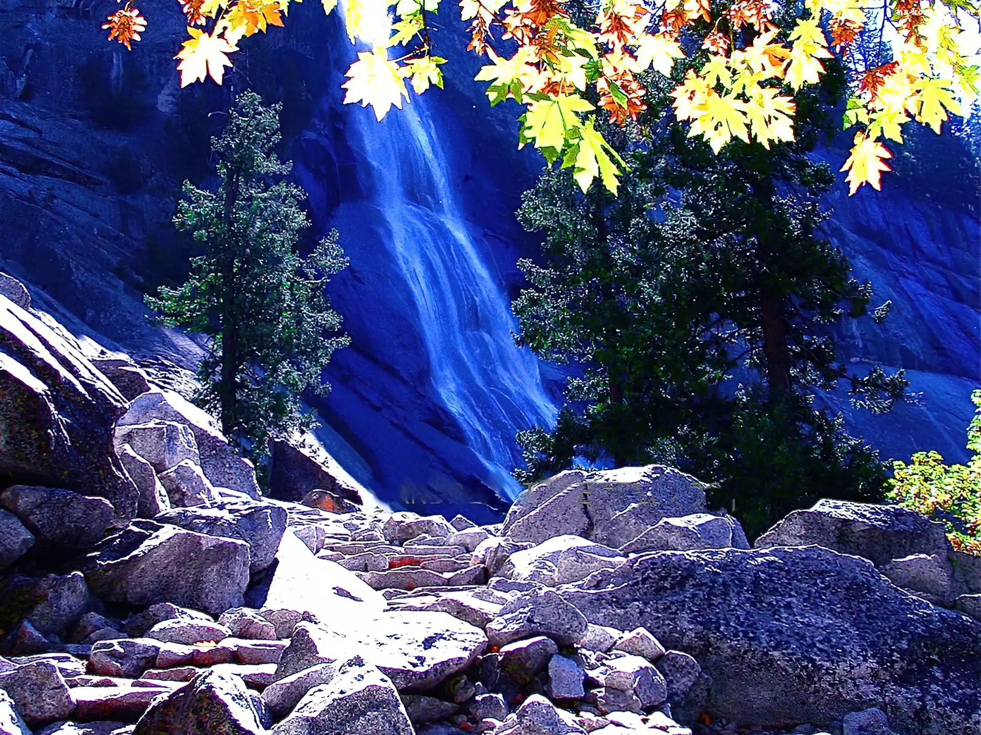 Wodospad, Skały, Góry, Rzeka na Komórkę