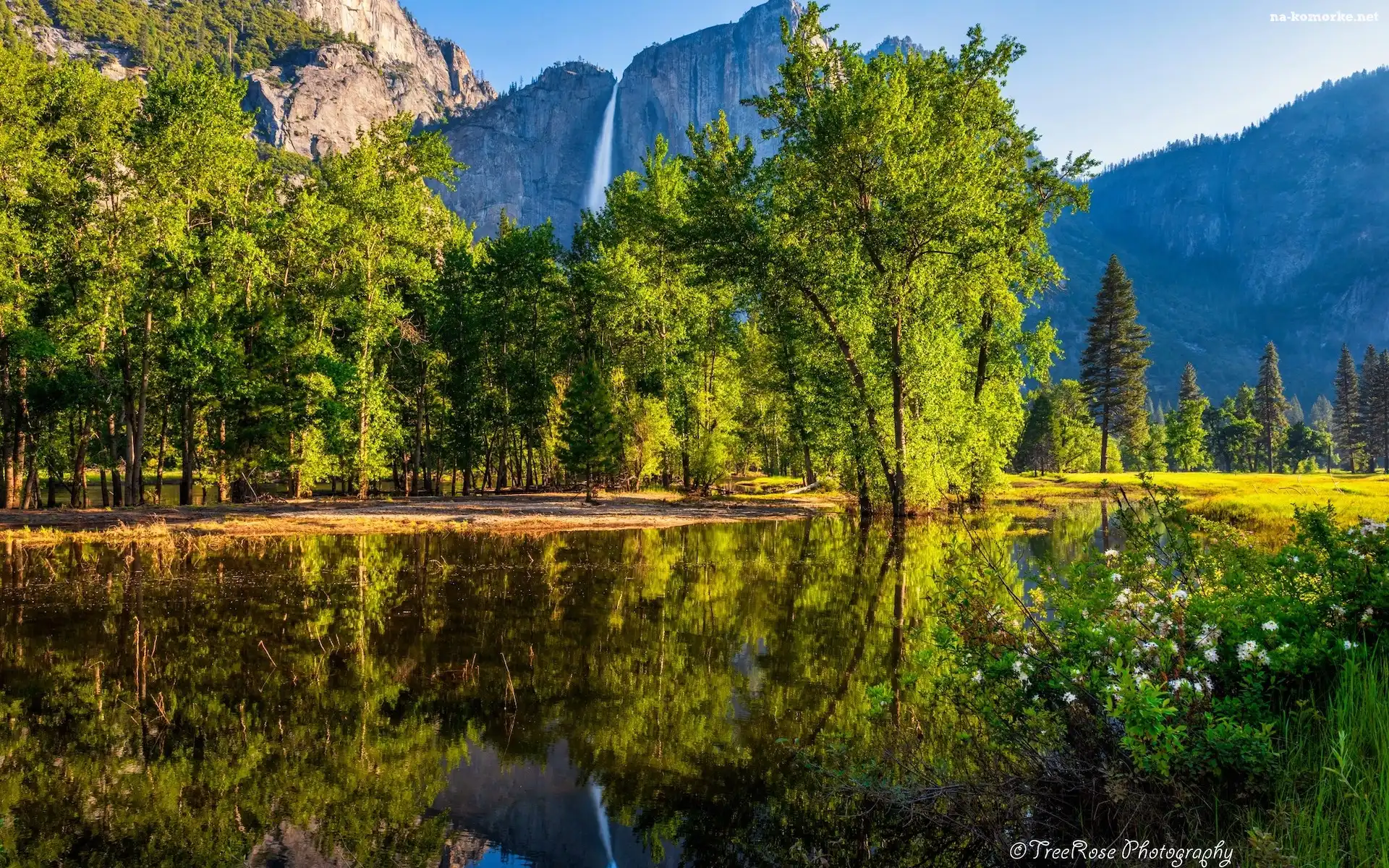 Wodospad, Rzeka, Stany Zjednoczone, Drzewa, Park Narodowy Yosemite, Góry, Kalifornia na Komórkę