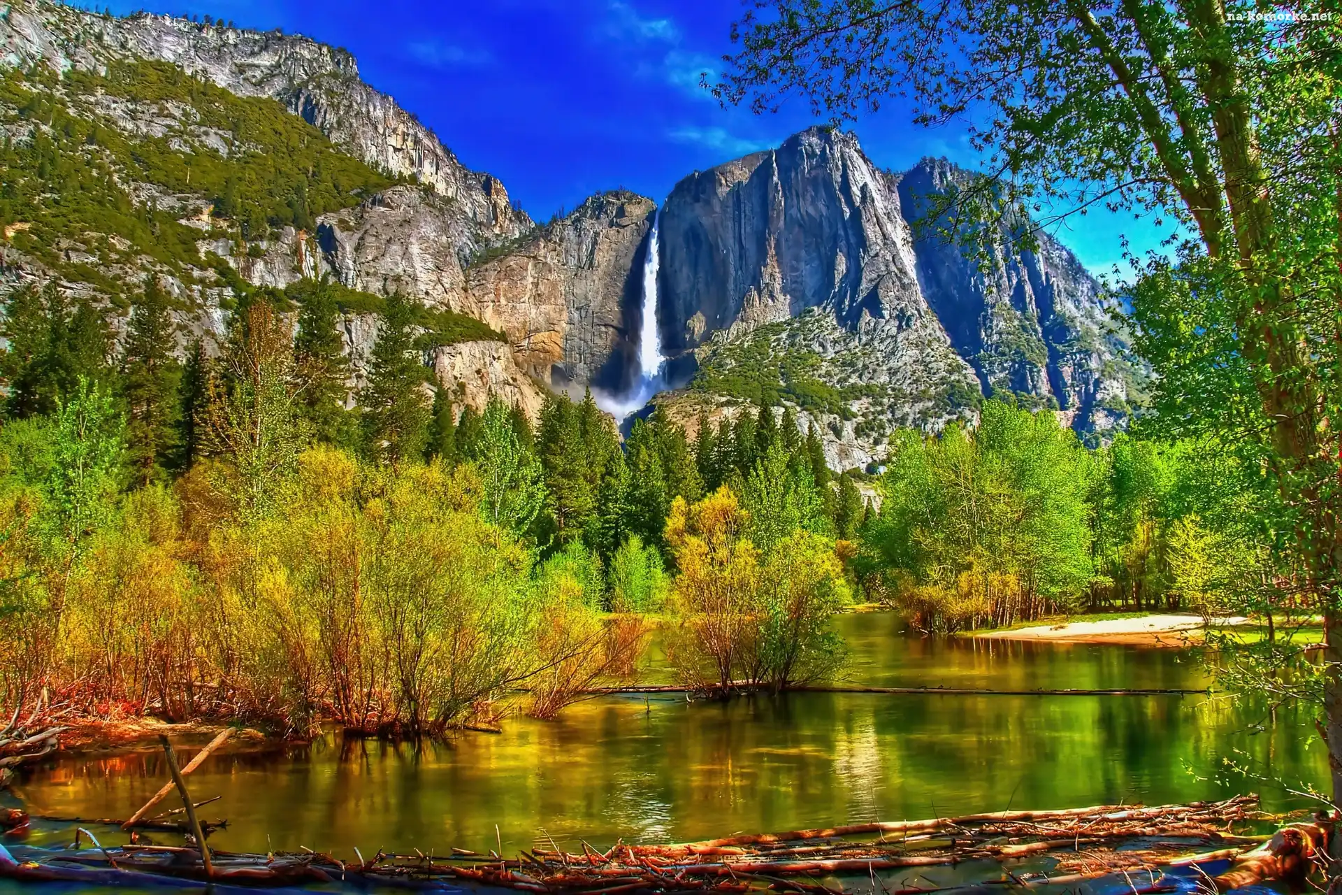 Jezioro, Wodospad, Góry na Komórkę