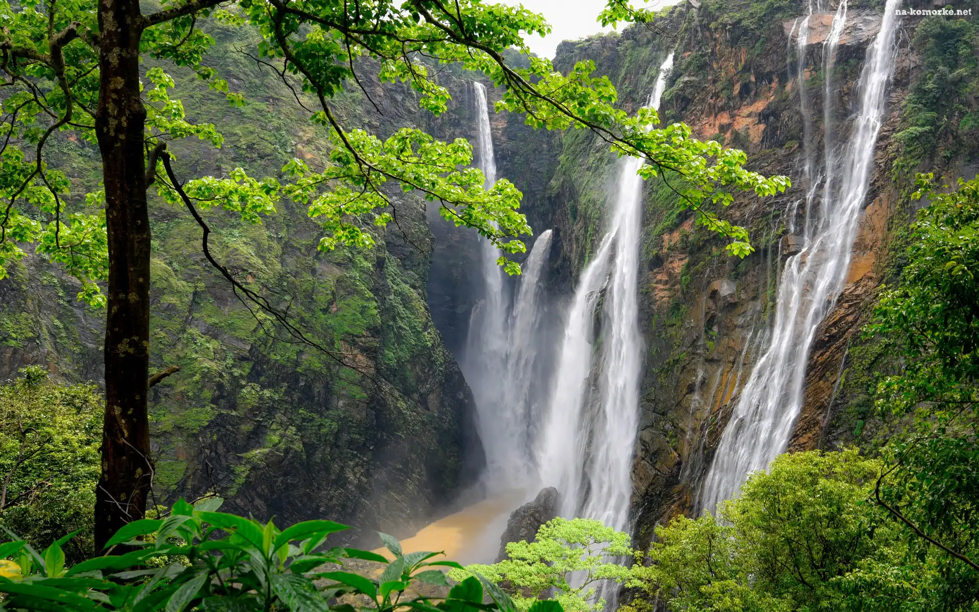 Indie, Skała, Wodospad Dźog, Rośliny, Stan Karnataka, Waterfalls Jog, Las, Drzewa na Komórkę
