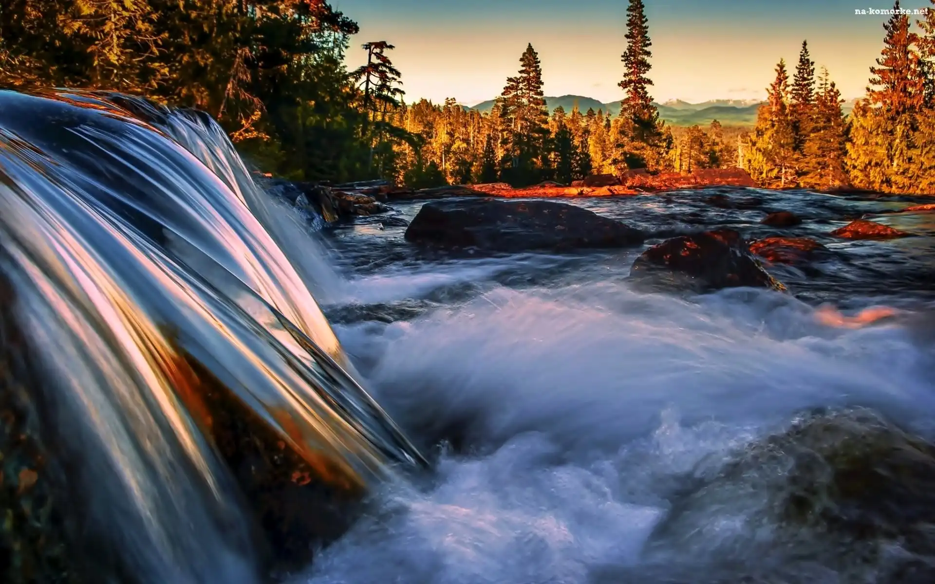 Wodospad, Drzewa, Rzeka, Jesień na Komórkę