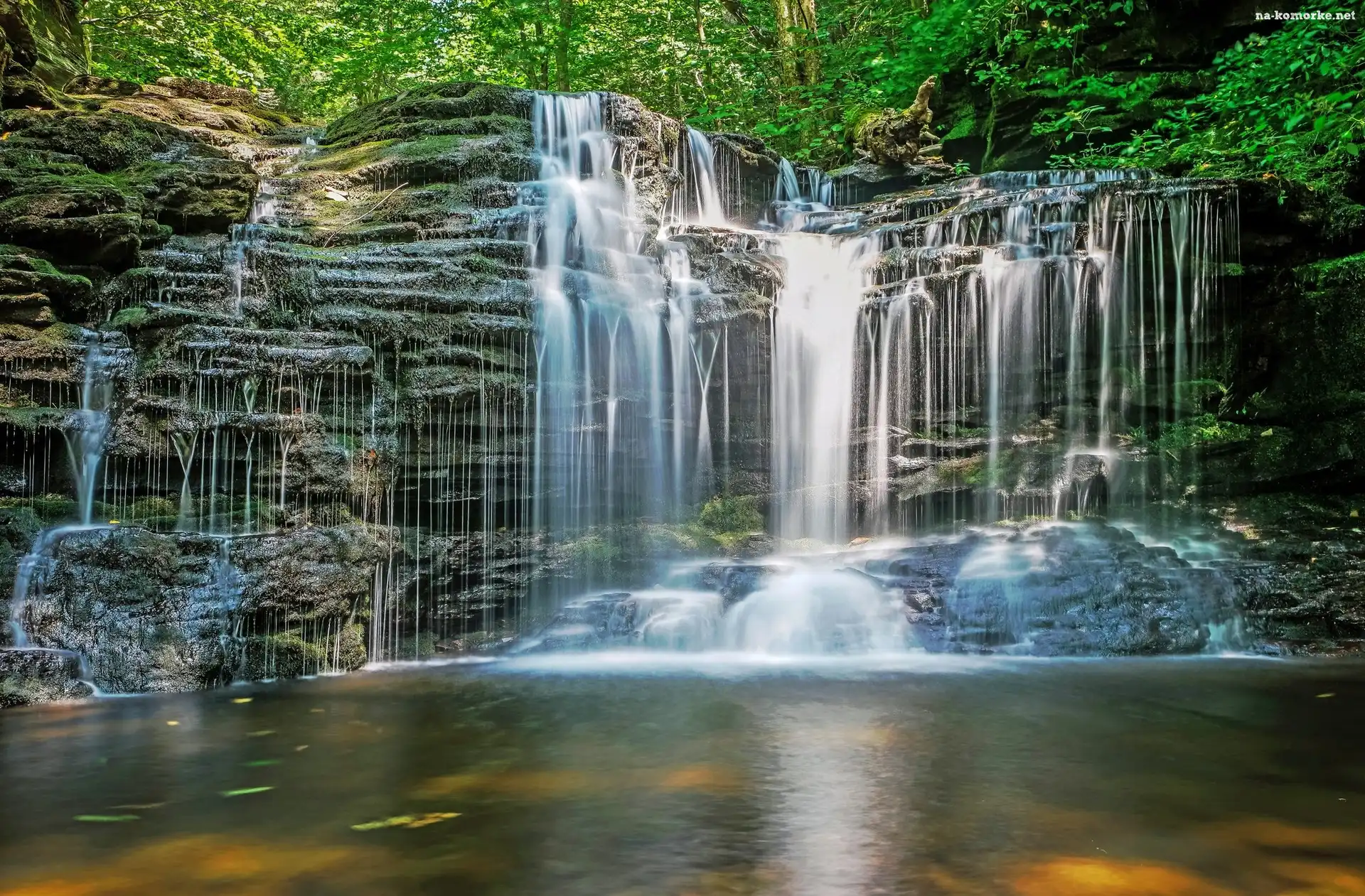 Wodospad, Drzewa, Rzeka, Skały na Komórkę