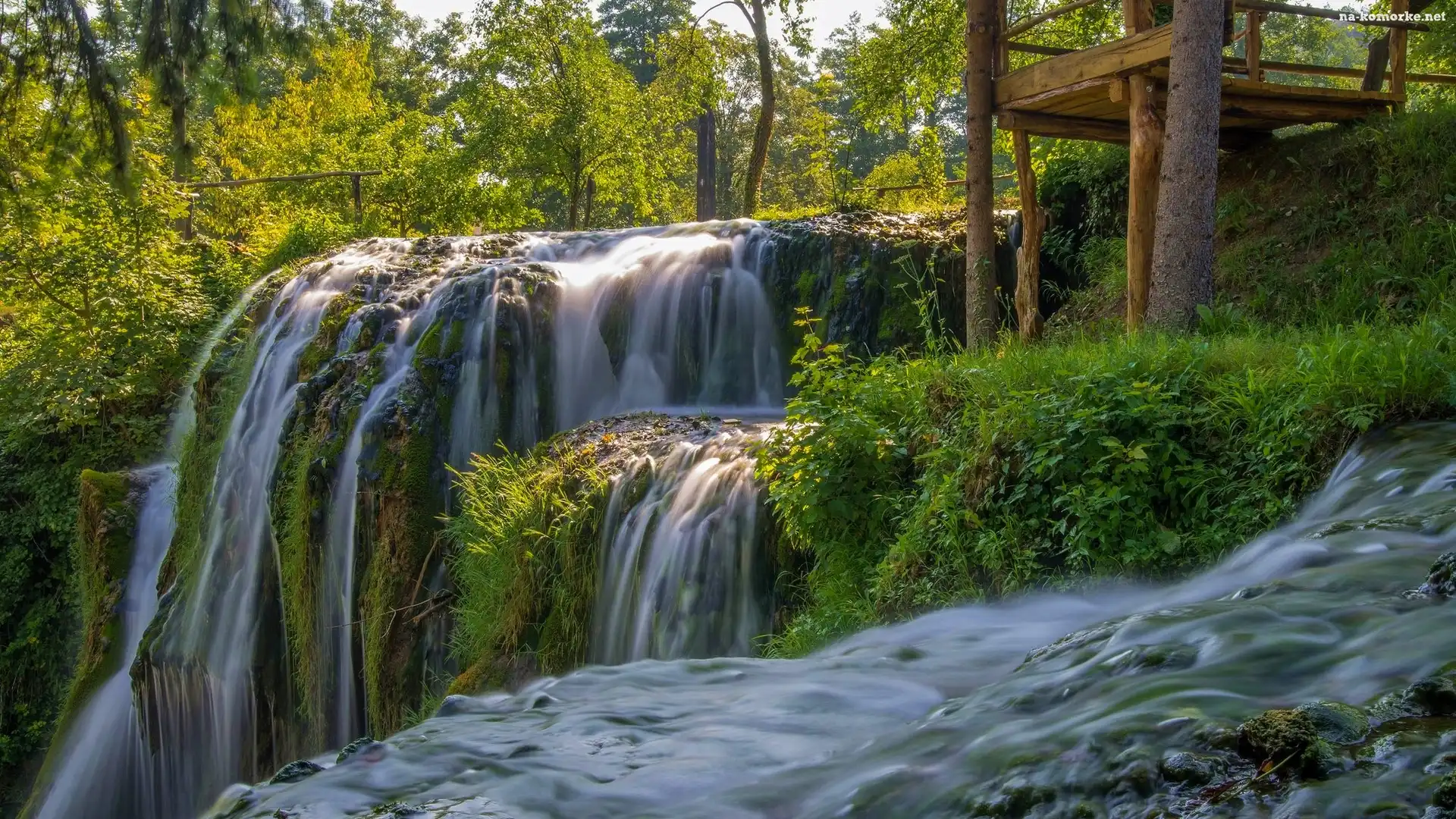 Wodospad, Pomost, Rzeka, Zieleń na Komórkę