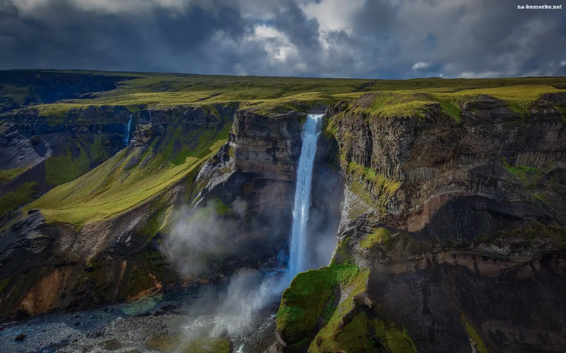 Wodospad Haifoss, Skały, Islandia na Komórkę