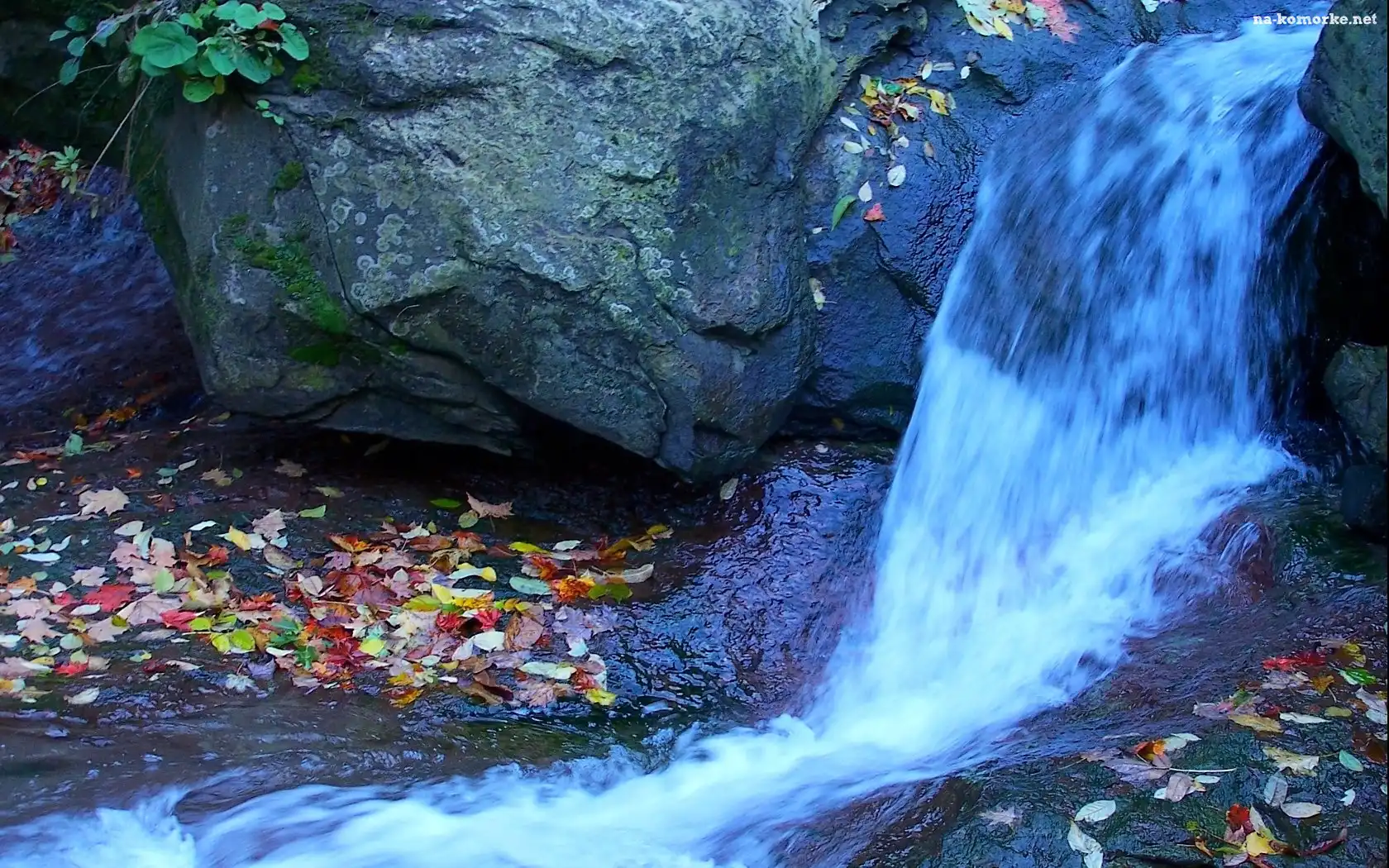 Wodospad, Liście, Skały, Kolorowe na Komórkę