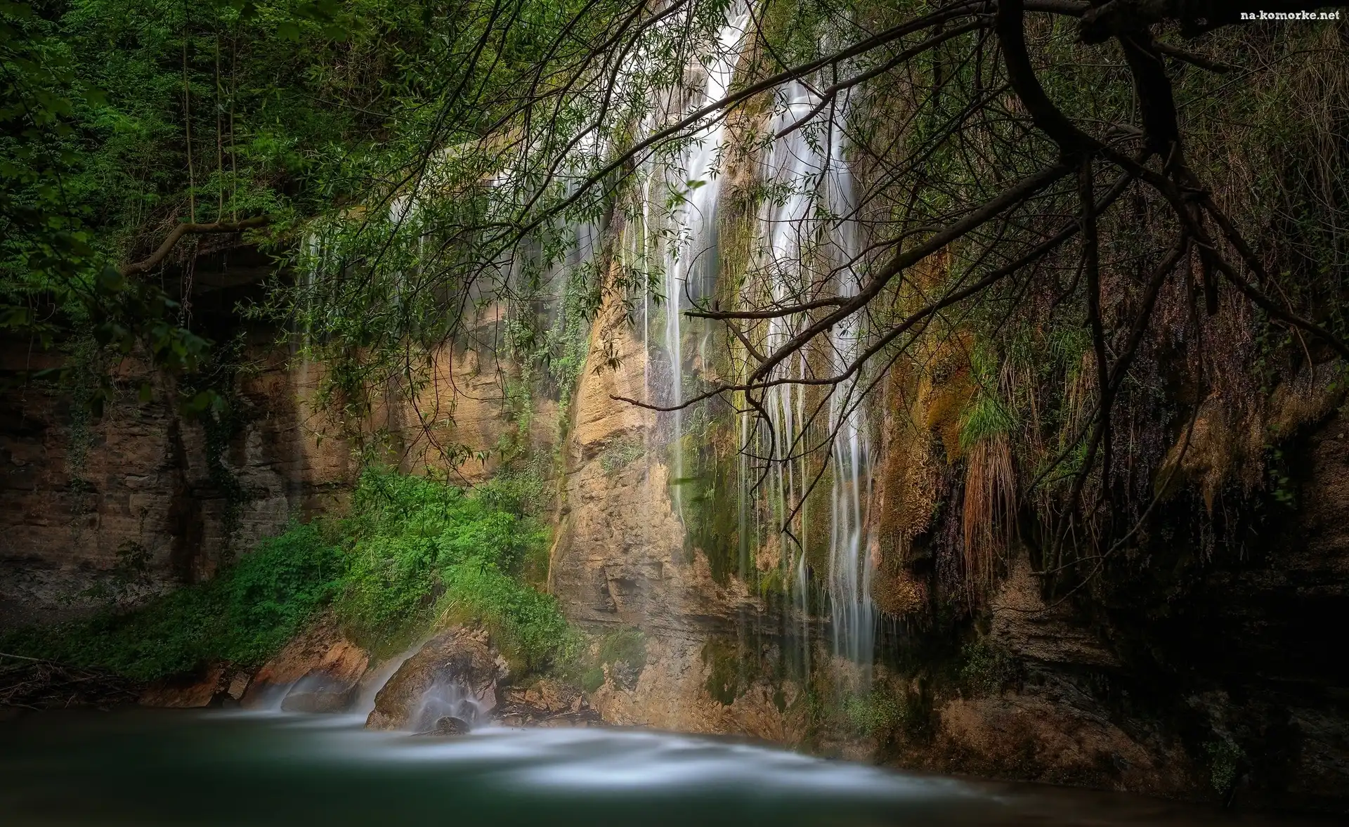Wodospad, Rośliny, Skały, Drzewa na Komórkę