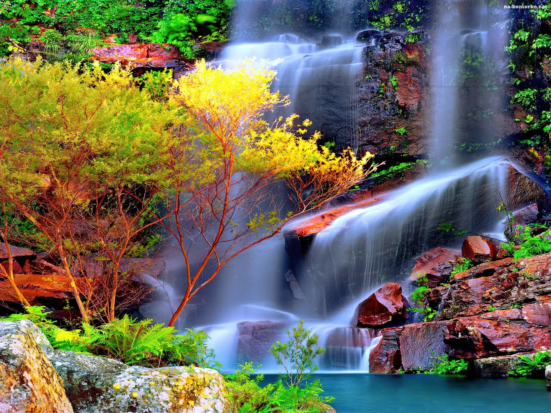 Wodospad, Rośliny, Skały, Kolorowe na Komórkę