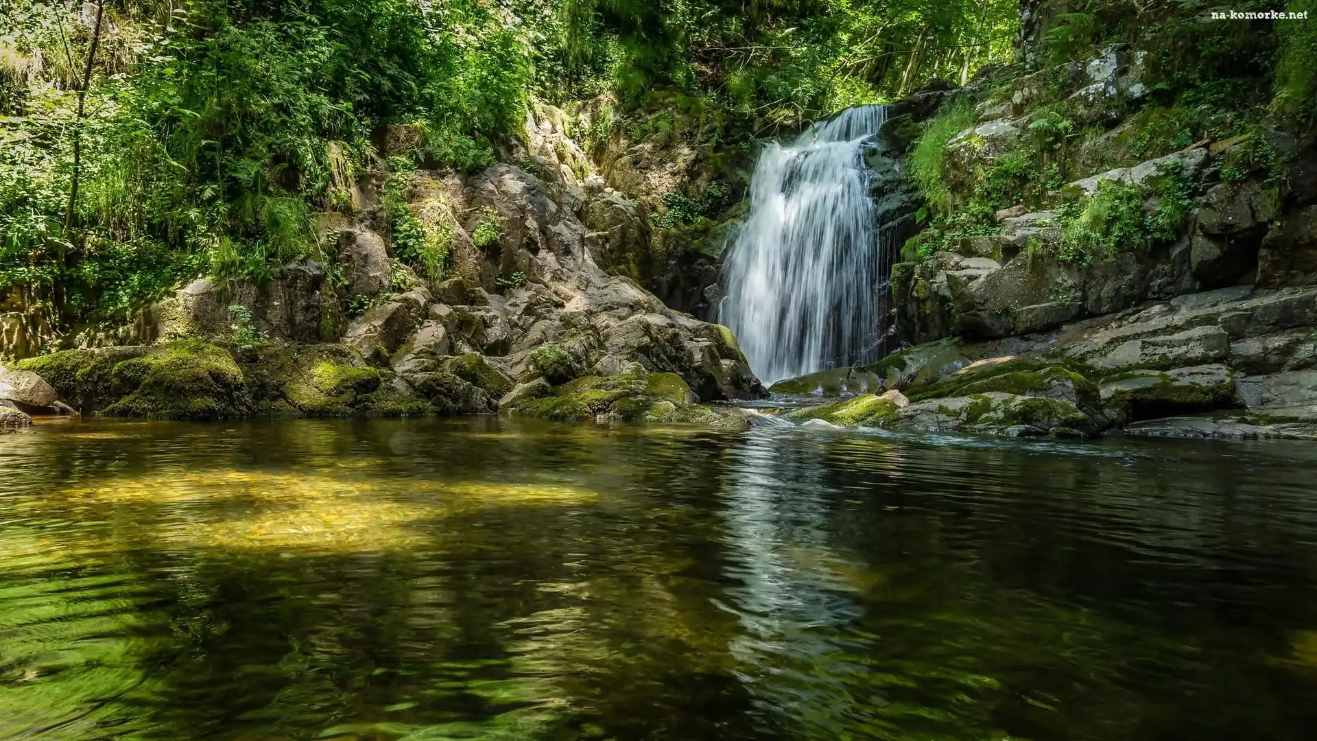 Wodospad, Rzeka, Skały, Góry na Komórkę