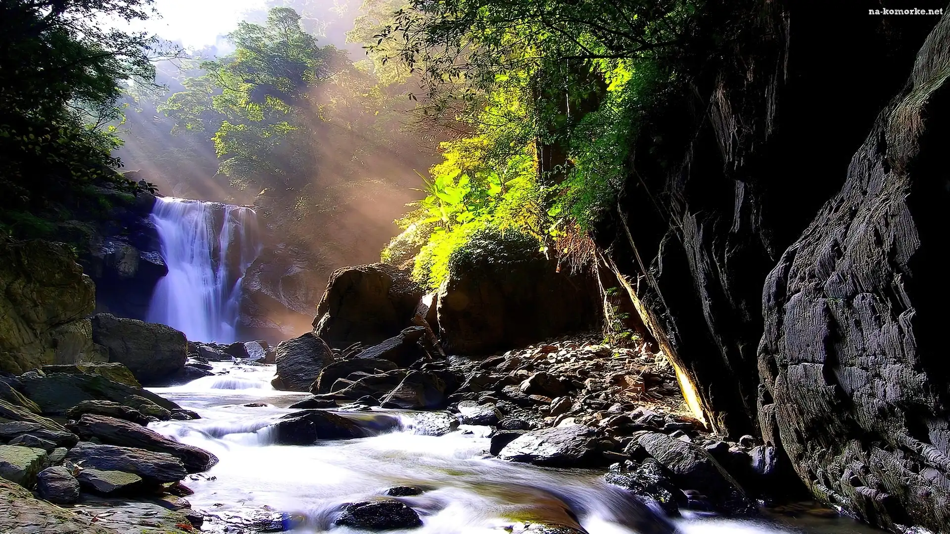 Wodospad, Drzewa, Woda, Kamienie na Komórkę