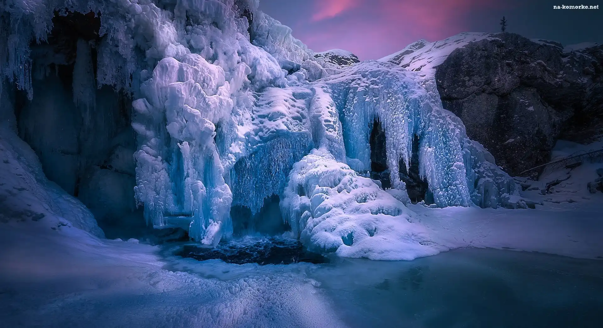 Norwegia, Wodospad Rjukandefoss, Skały, Hemsedal, Zima, Lód, Zamarznięty na Komórkę