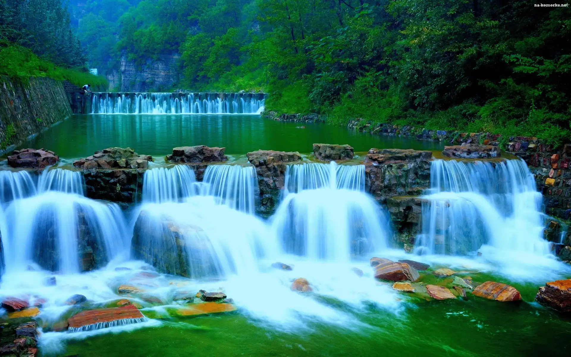 Wodospady, Las, Kamienie, Skały na Komórkę