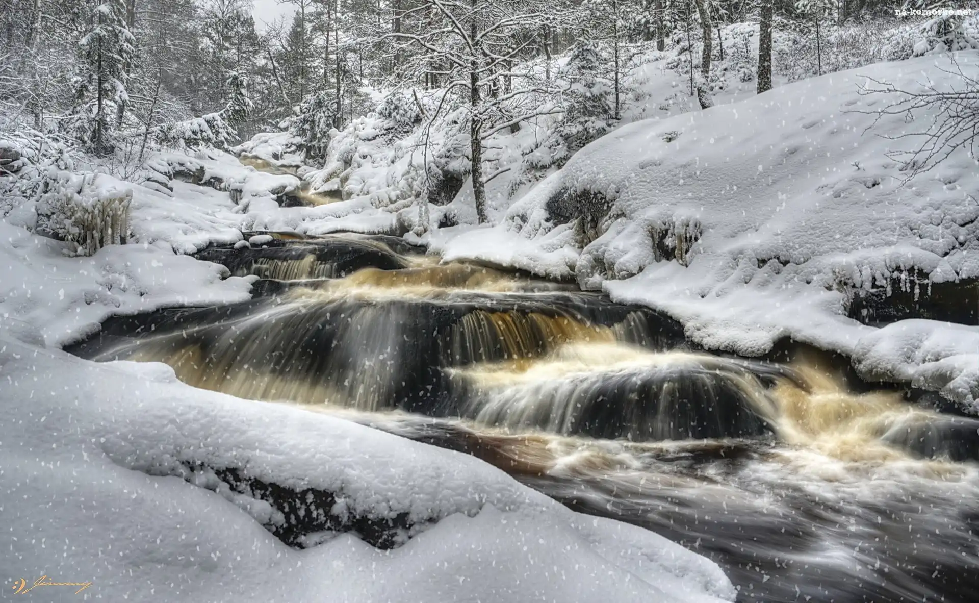 Wody, Rzeka, Las, Zima, Kaskady, Śnieg na Komórkę