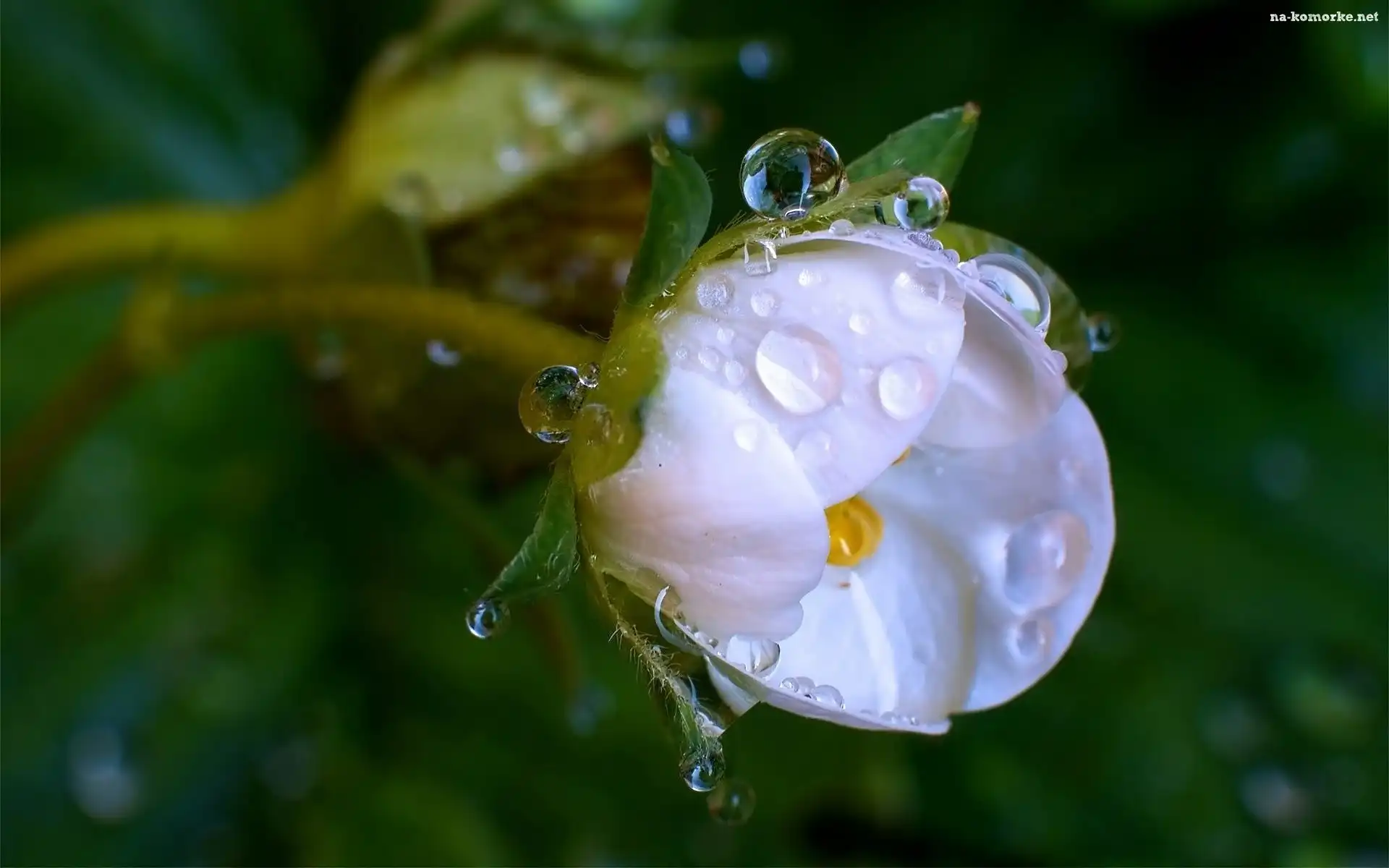 Wody, Pączek, Biały, Kwiat, Krople na Komórkę