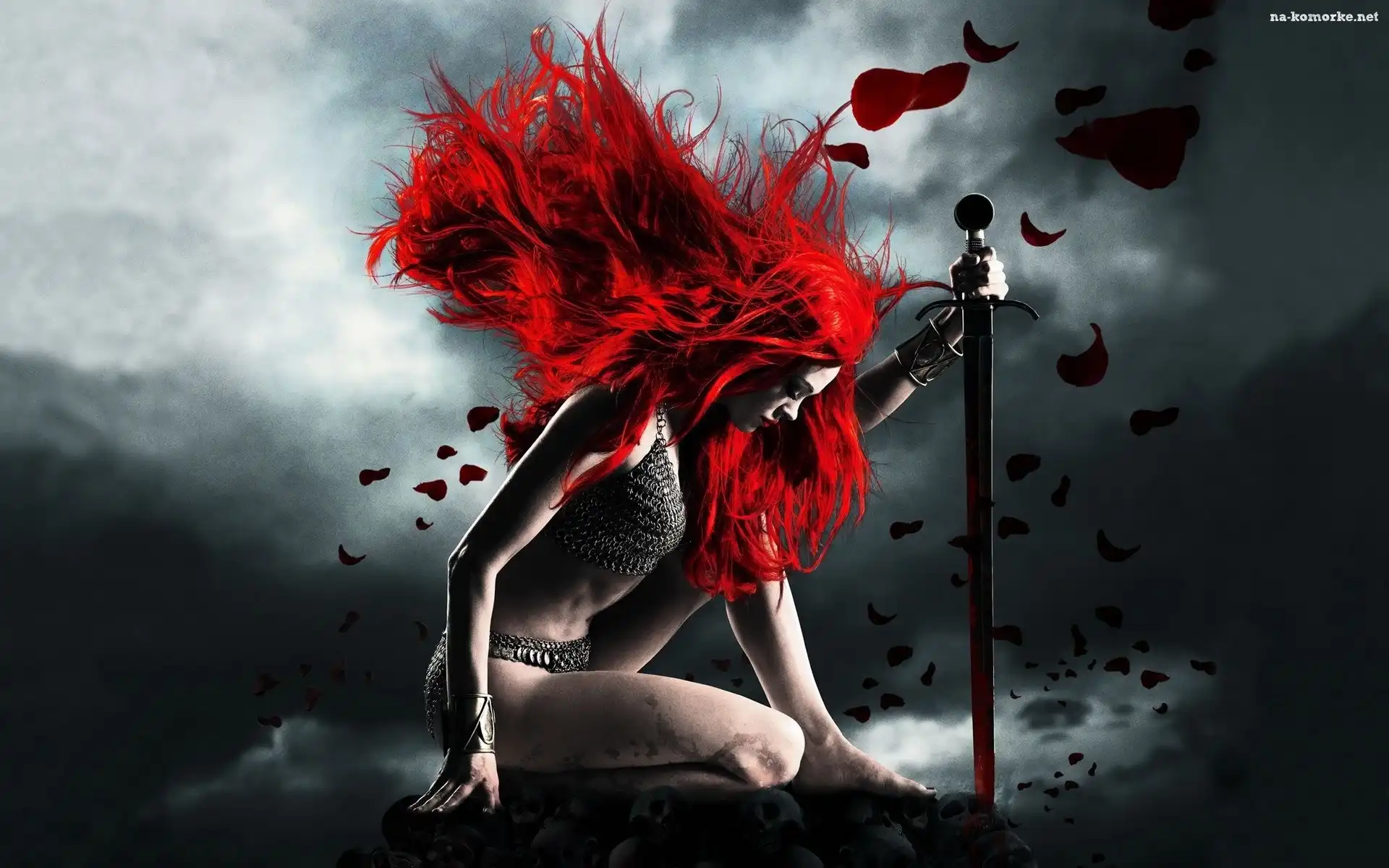 Wojowniczka, Miecz, Czerwone, Włosy na Komórkę