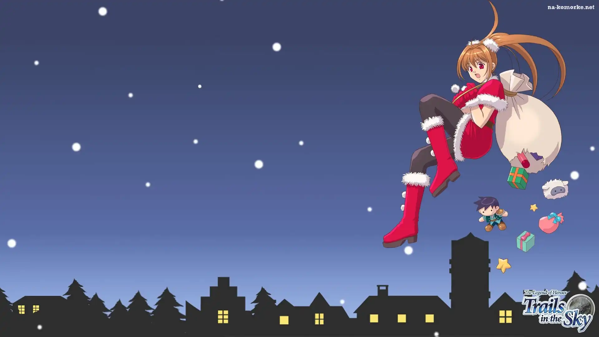 In, Dziewczyna, Świąteczne, Prezentów, Sky, Worek, Niebo, The, Przebranie, Miasto, Nocą, Trial na Komórkę |