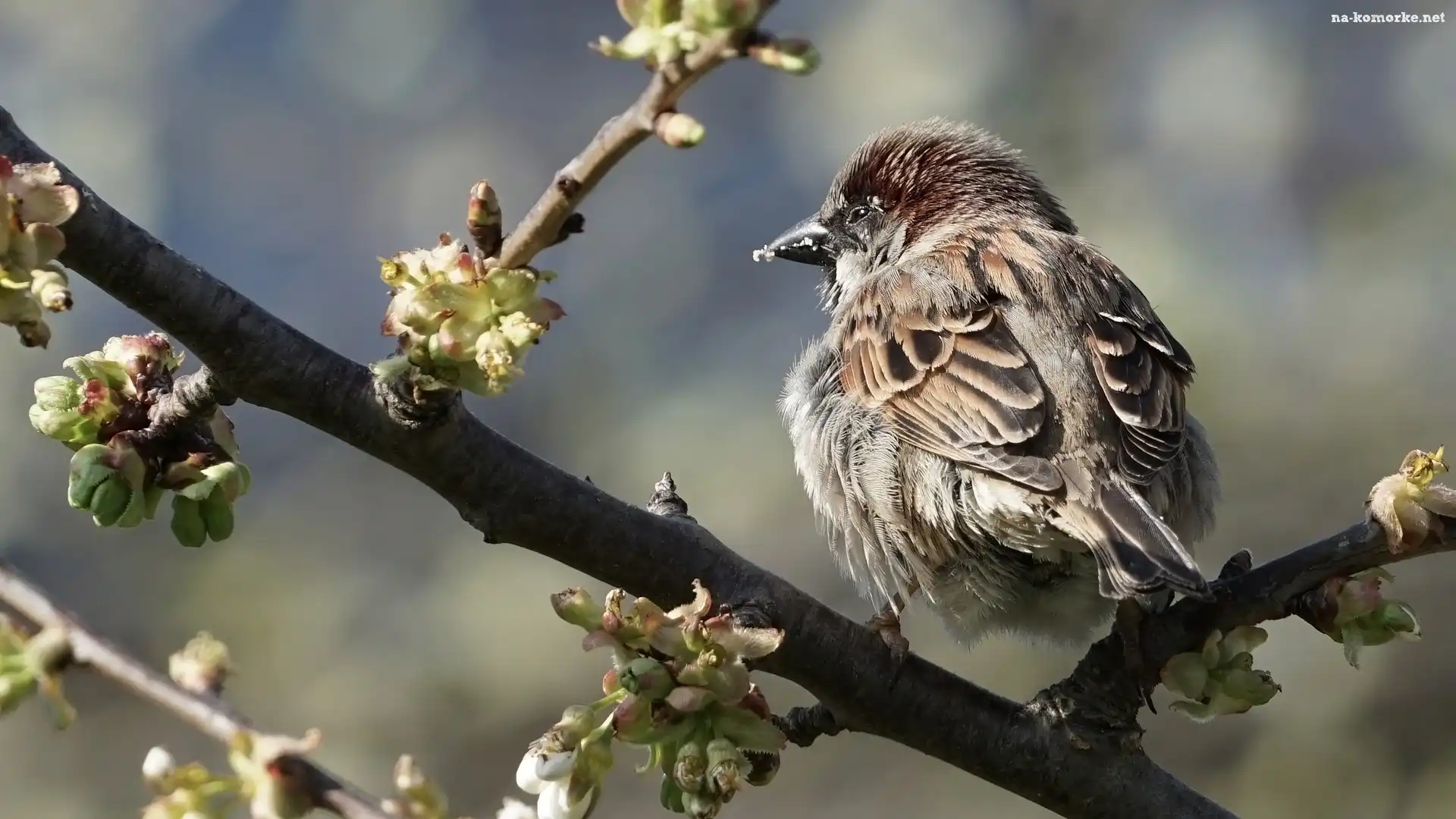 Gałęzie, Pąki, Ptak, Wróbel na Komórkę