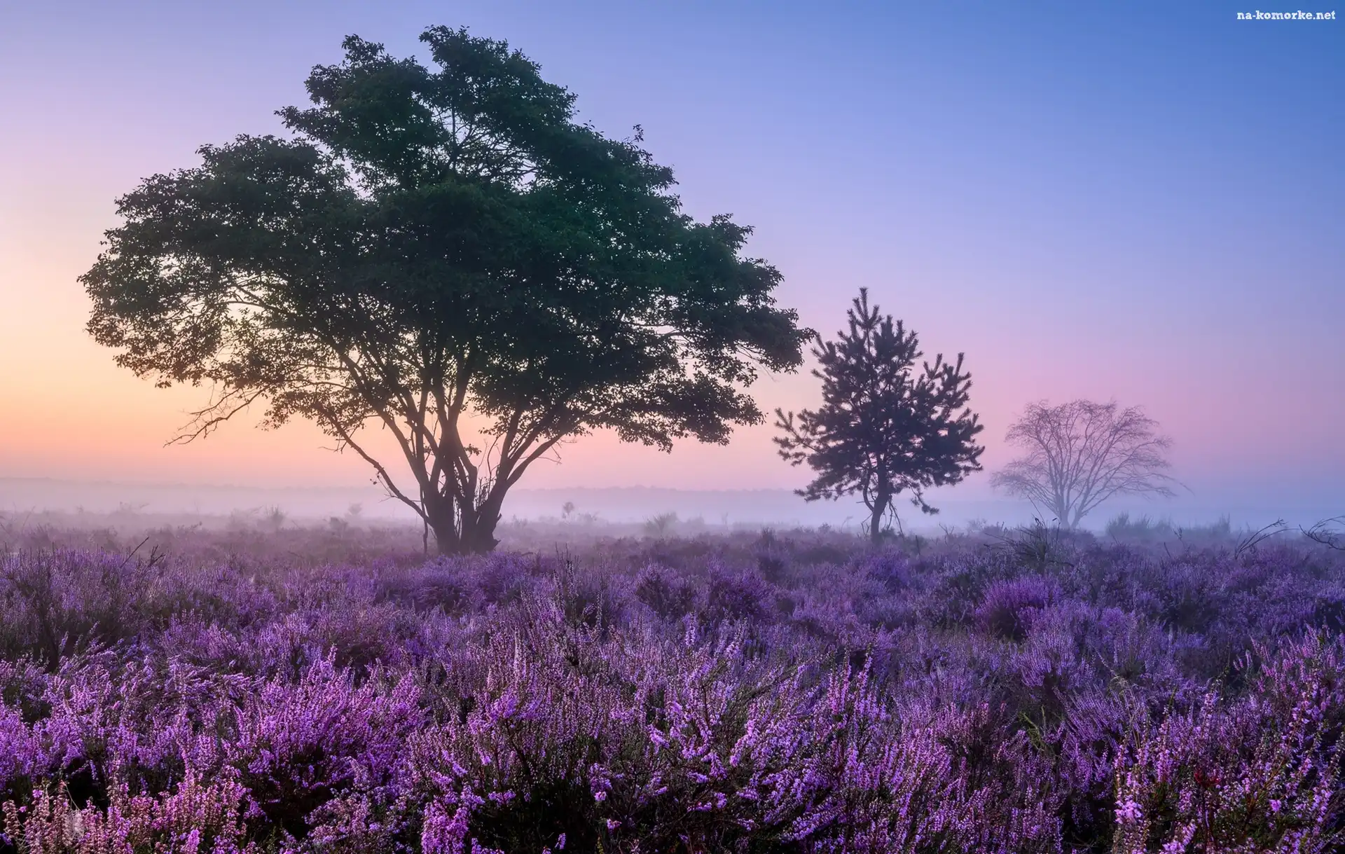 Wrzosy, Mgła, Wrzosowisko, Drzewa na Komórkę