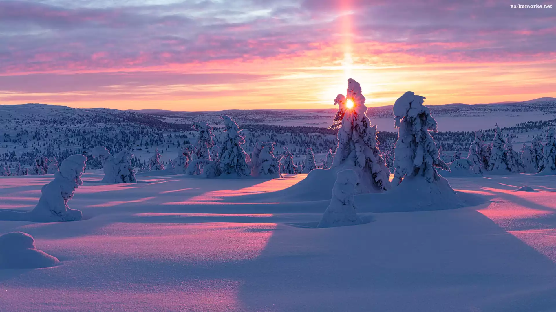 Zima, Śnieg, Ośnieżone, Wschód słońca, Drzewa na Komórkę