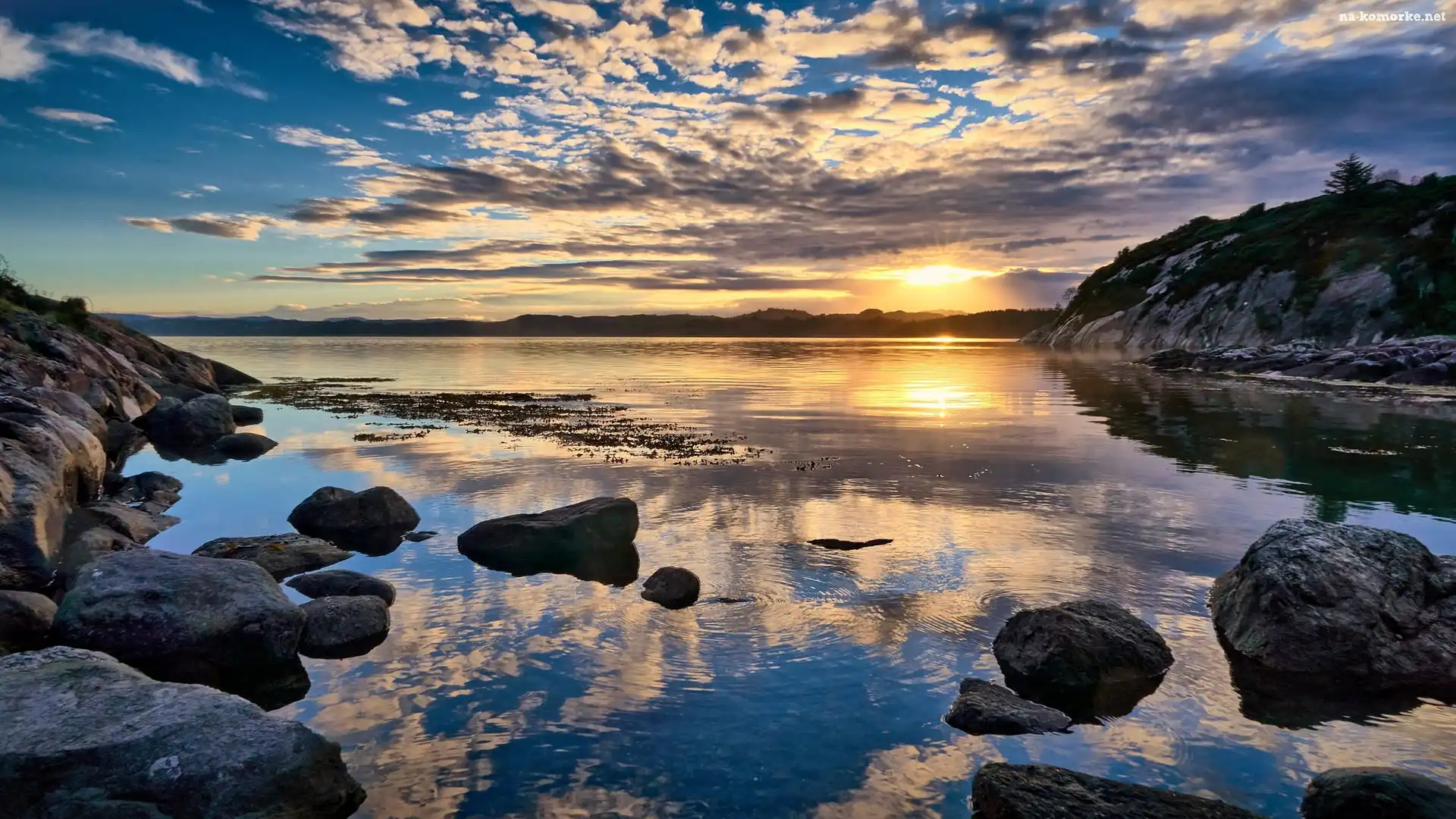 Wschód słońca, Norwegia, Morze, Kamienie, Góry na Komórkę