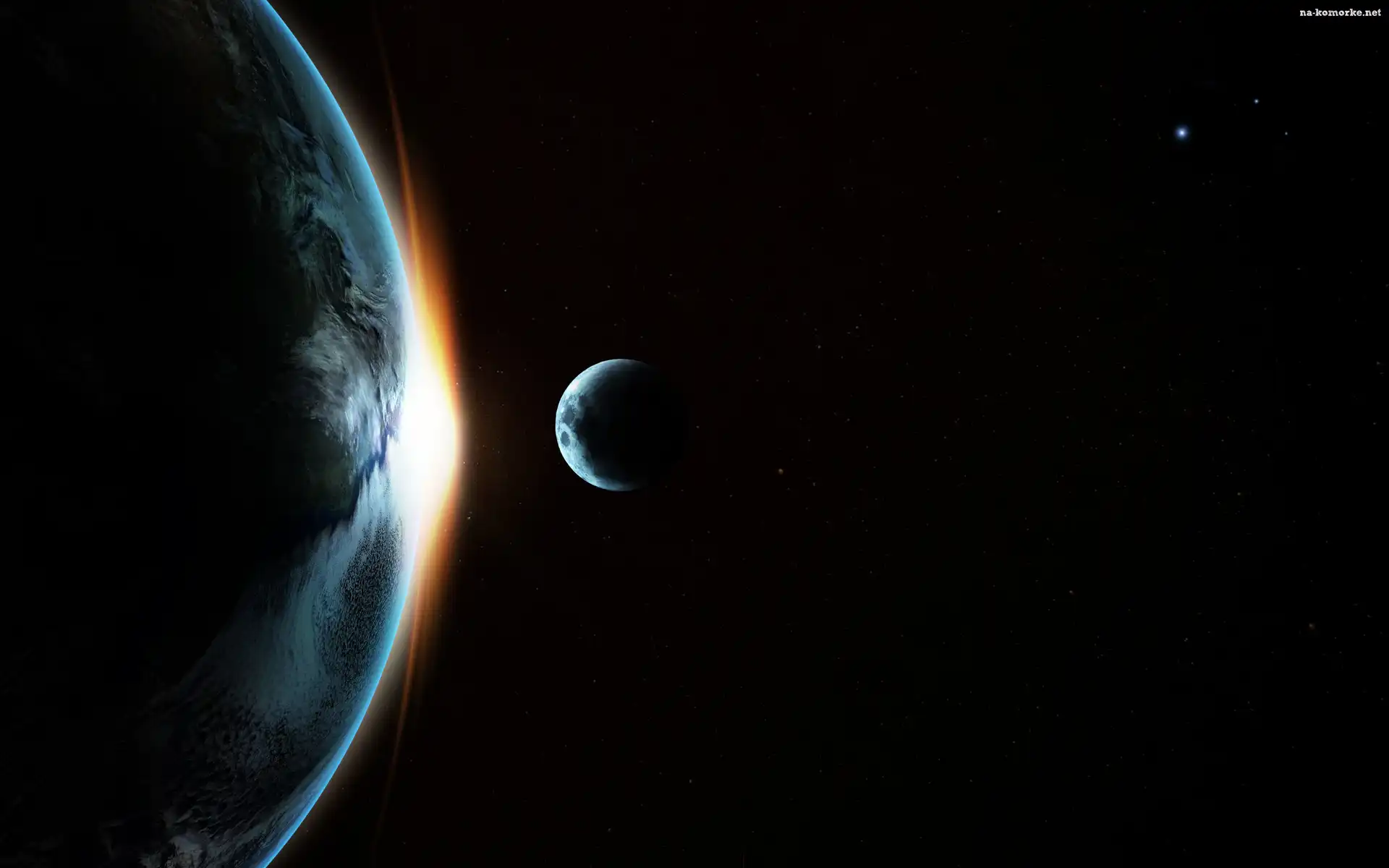Wschód słońca, Planeta, Ziemia, Księżyc, Gwiazdy na Komórkę