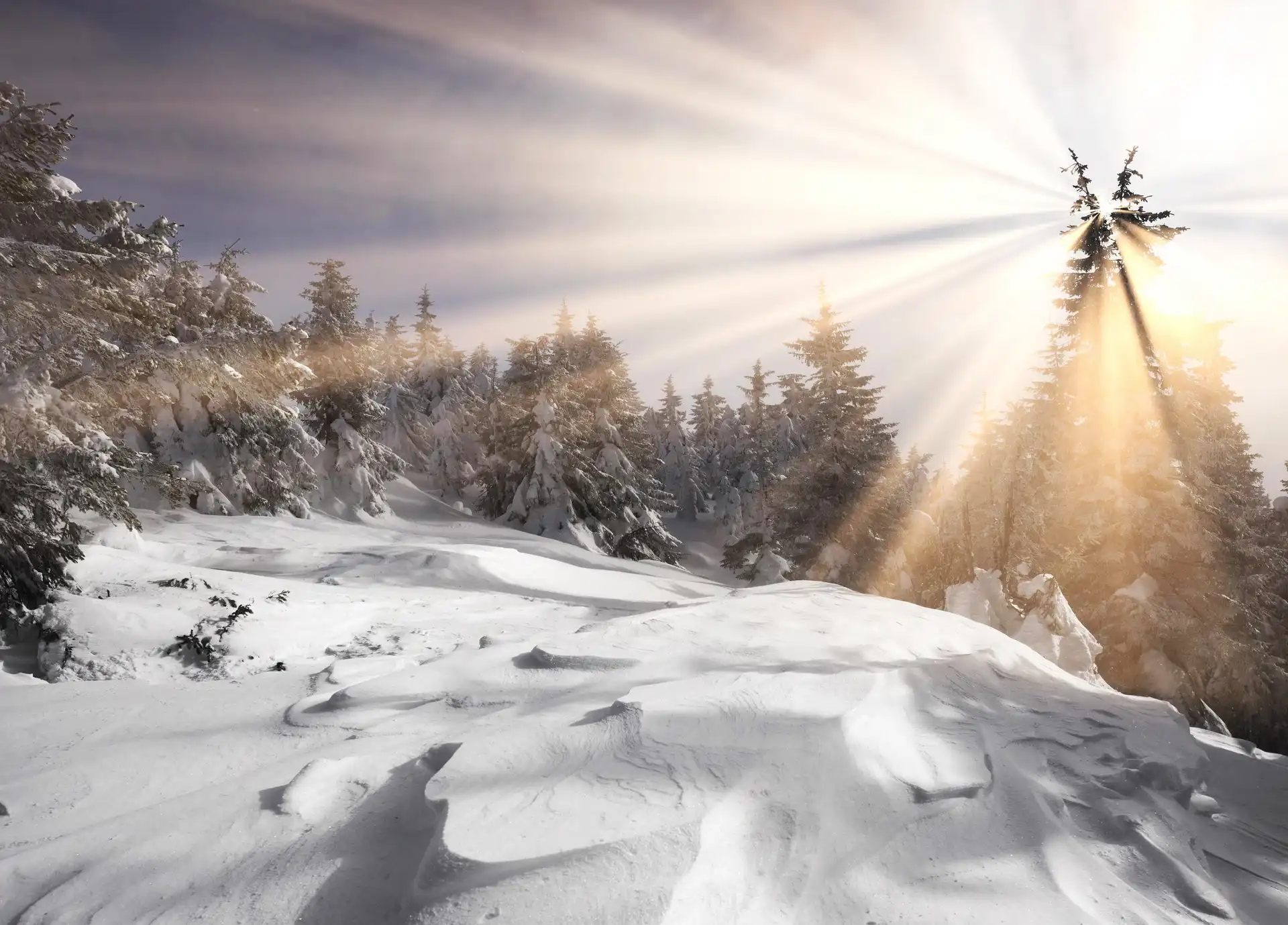 Wschód, Zaspa, Zima, Słońca, Las, Promienie na Komórkę