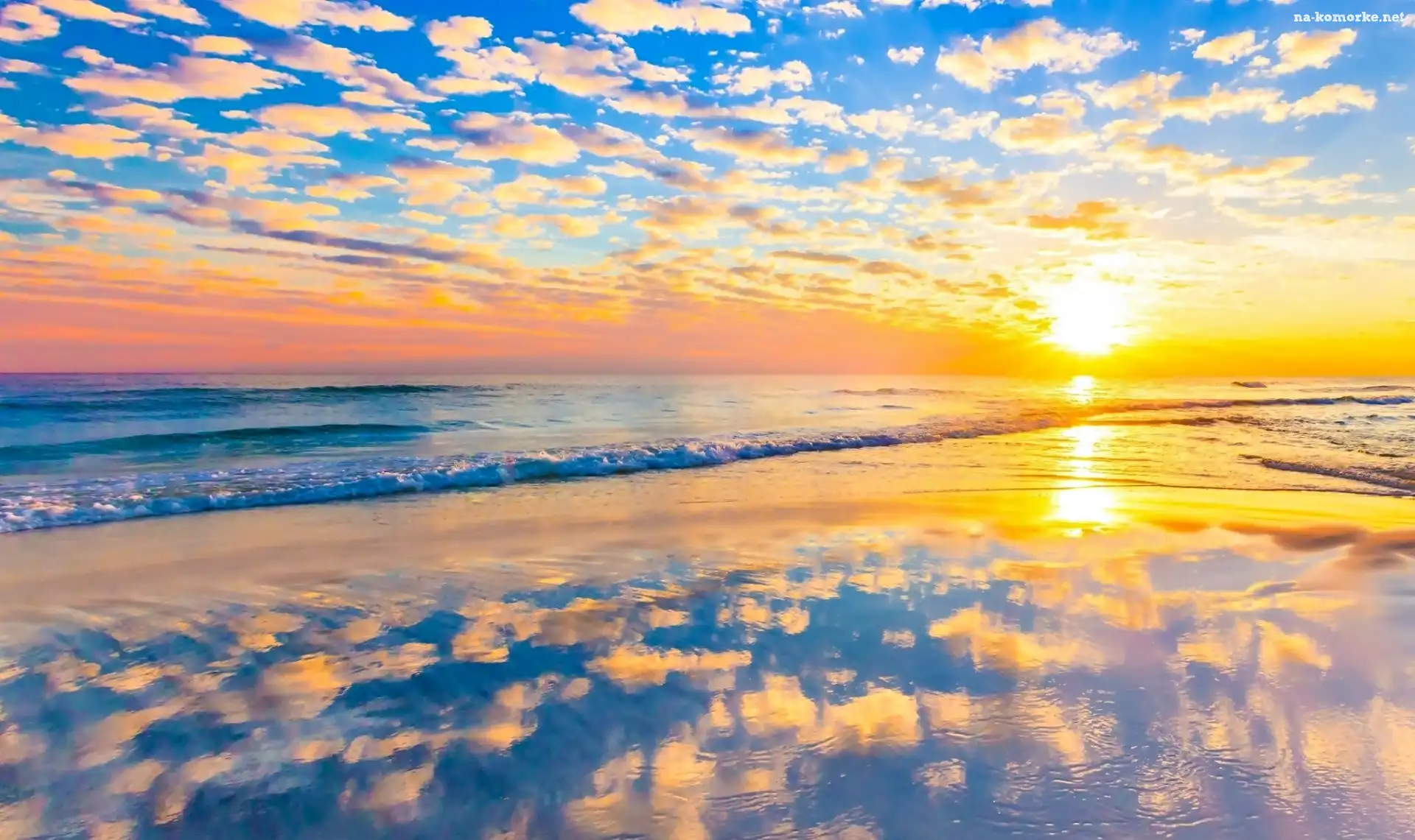 Wschód Słońca, Odbicie, Morze, Obłoki na Komórkę