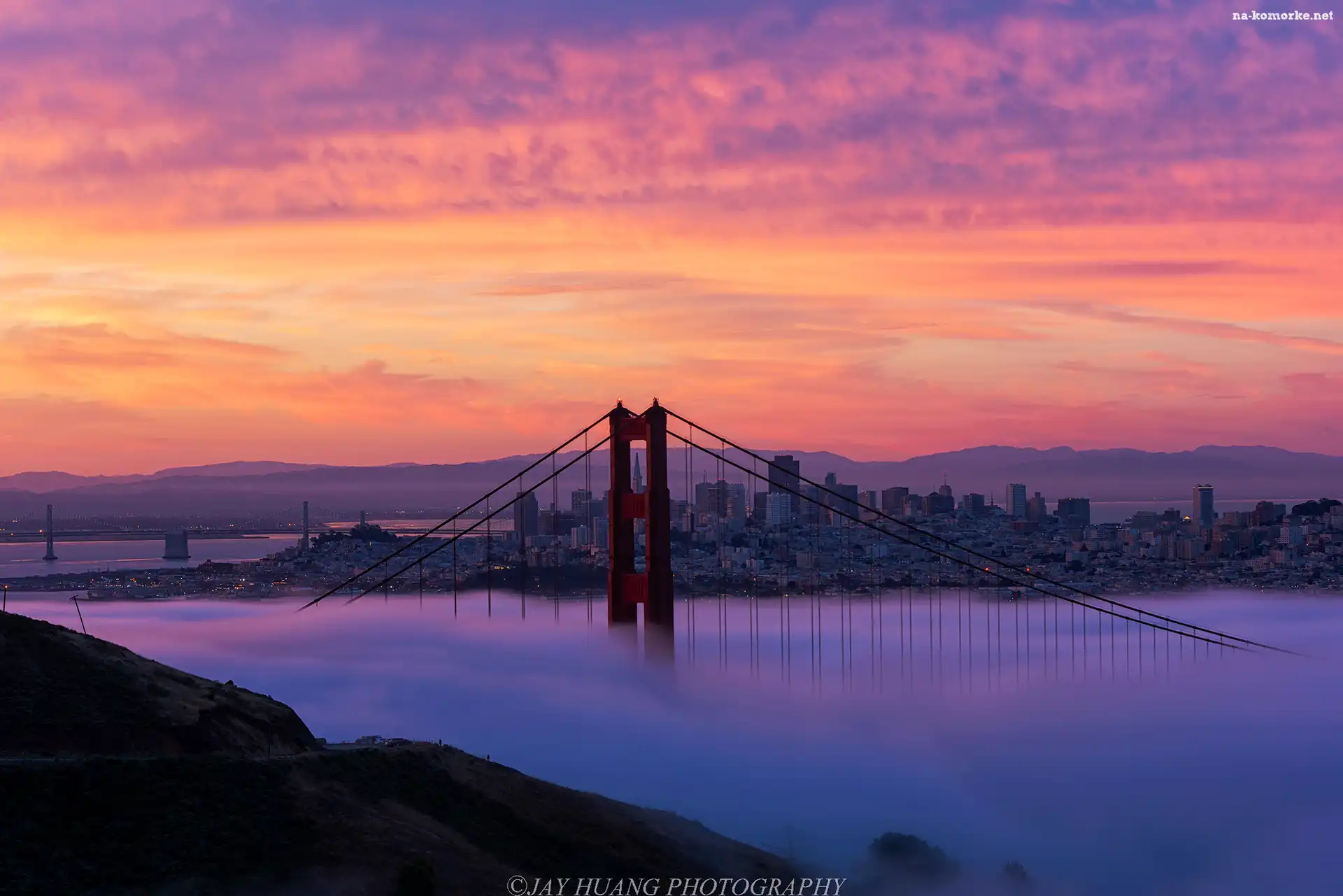 Most Golden Gate, Mgła, Wschód słońca, Cieśnina Golden Gate, San Francisco, Kalifornia, Stany Zjednoczone na Komórkę |