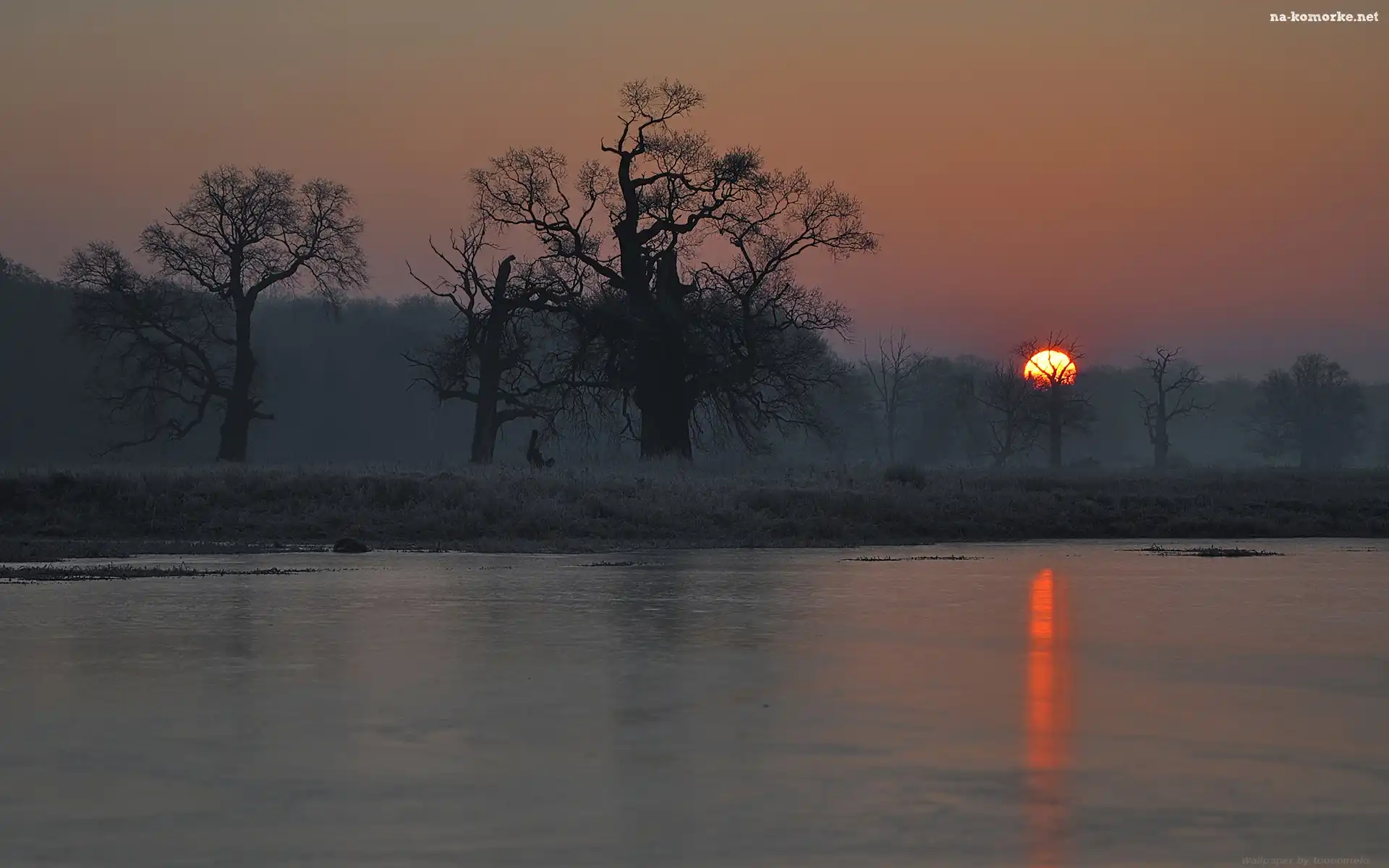 Wschód słońca, Mgła, Rogalin, Jezioro na Komórkę
