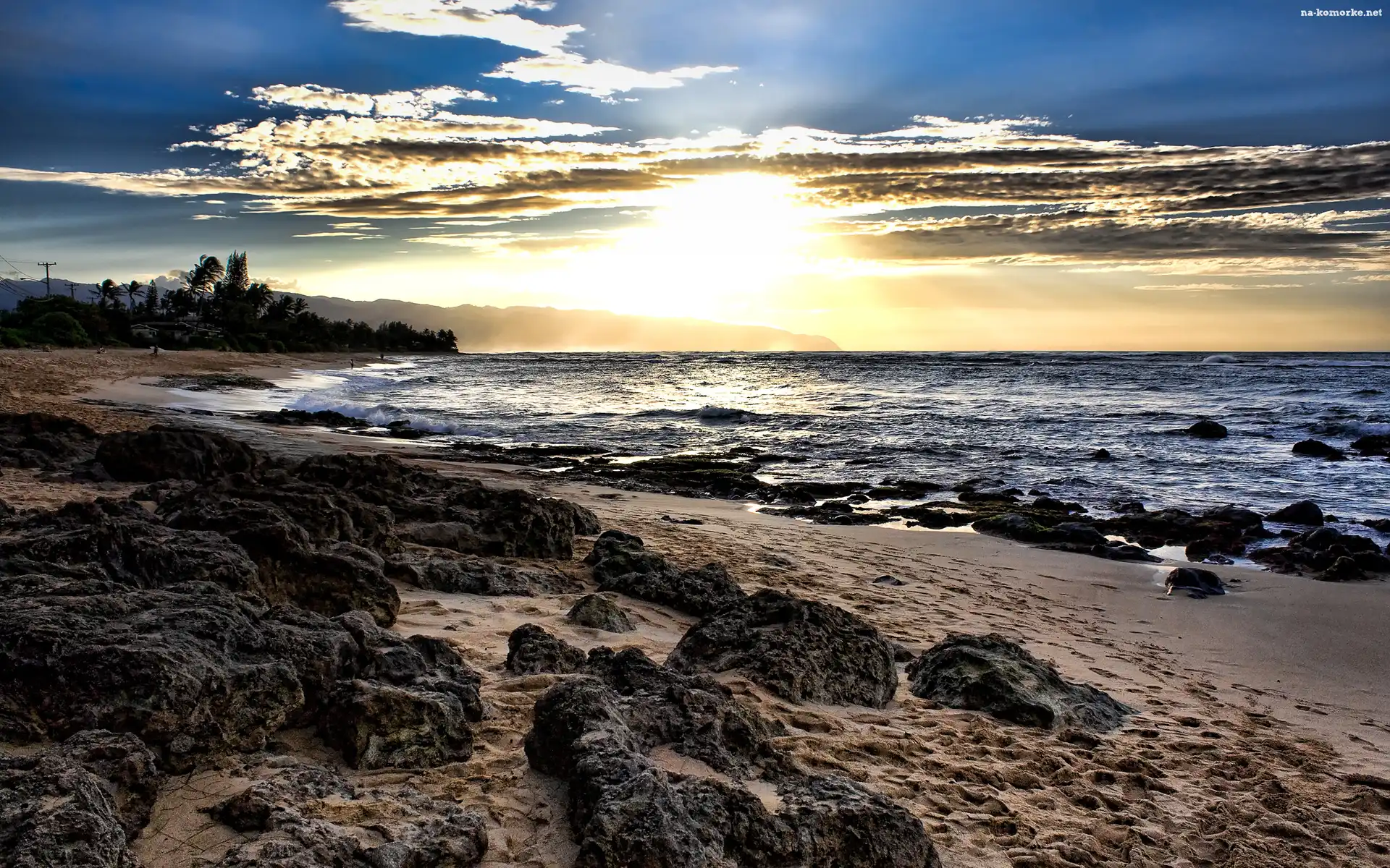 Wschód, Kamienie, Słońca, Morze na Komórkę