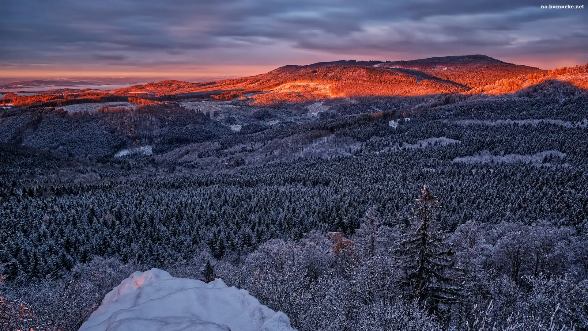 Śnieg, Góry Jesioniki, Zima, Czechy, Lasy, Sudety Wschodnie na Komórkę